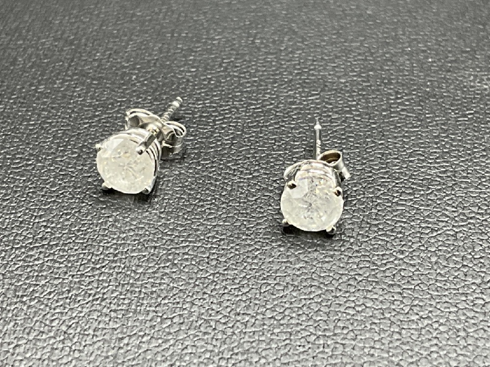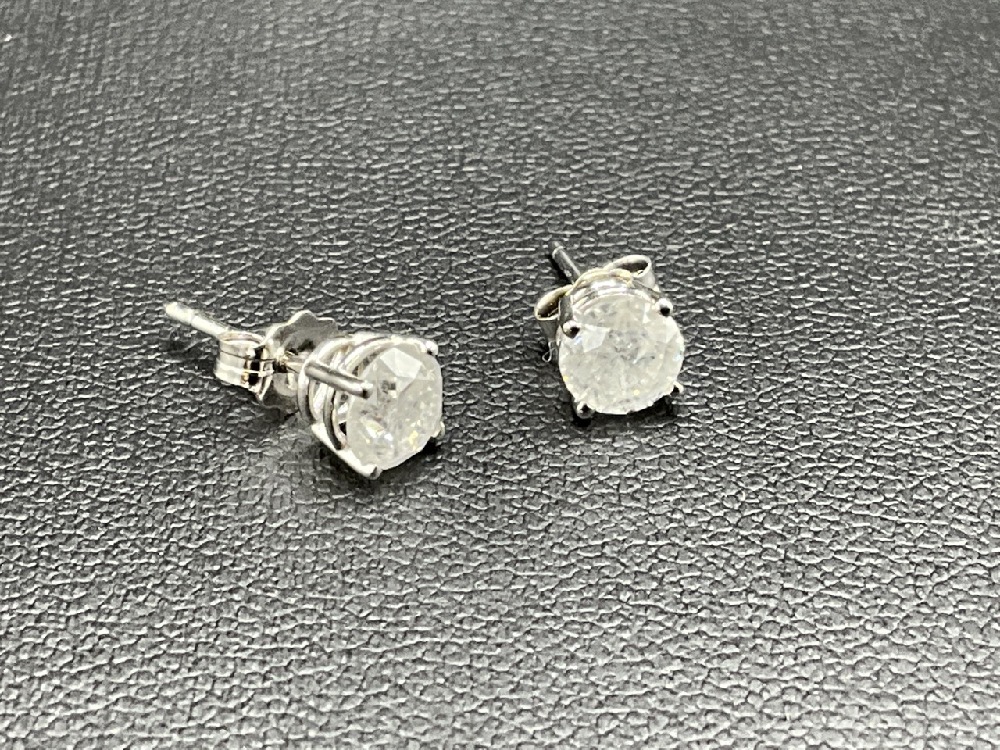 14K White Gold Diamond Stud Earrings. 1ct total weight.