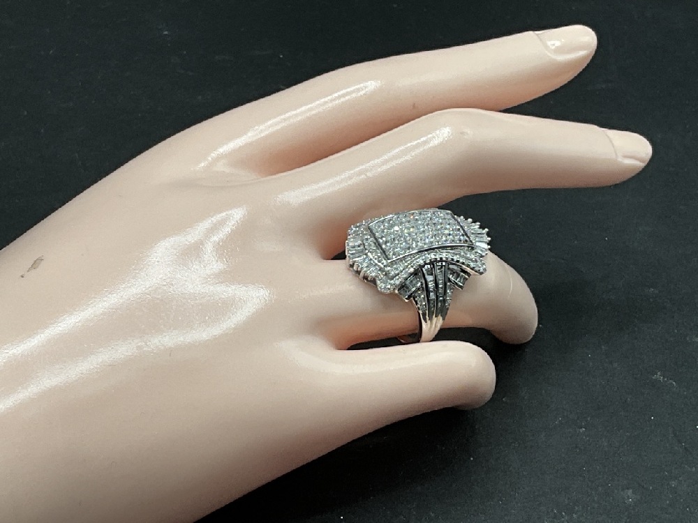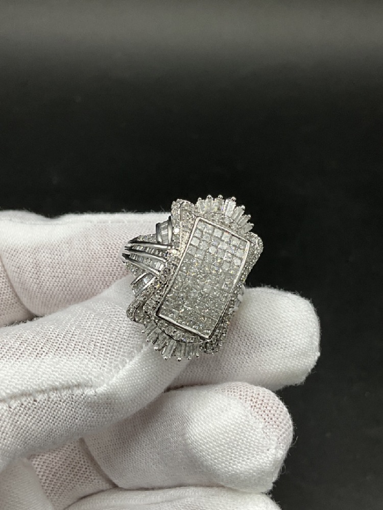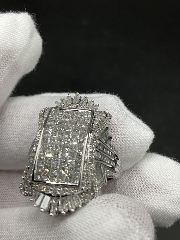 10K Large White Cluster Diamond Ring 2.50ct total diamond weight.