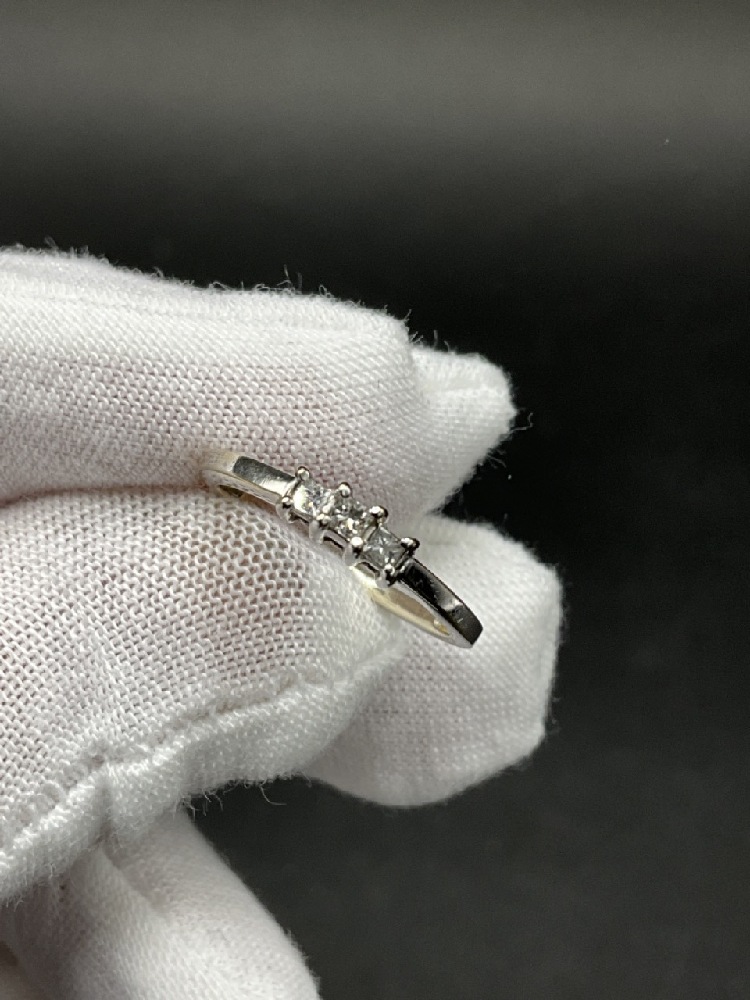 10K White Gold Three (3) Diamond Ring.