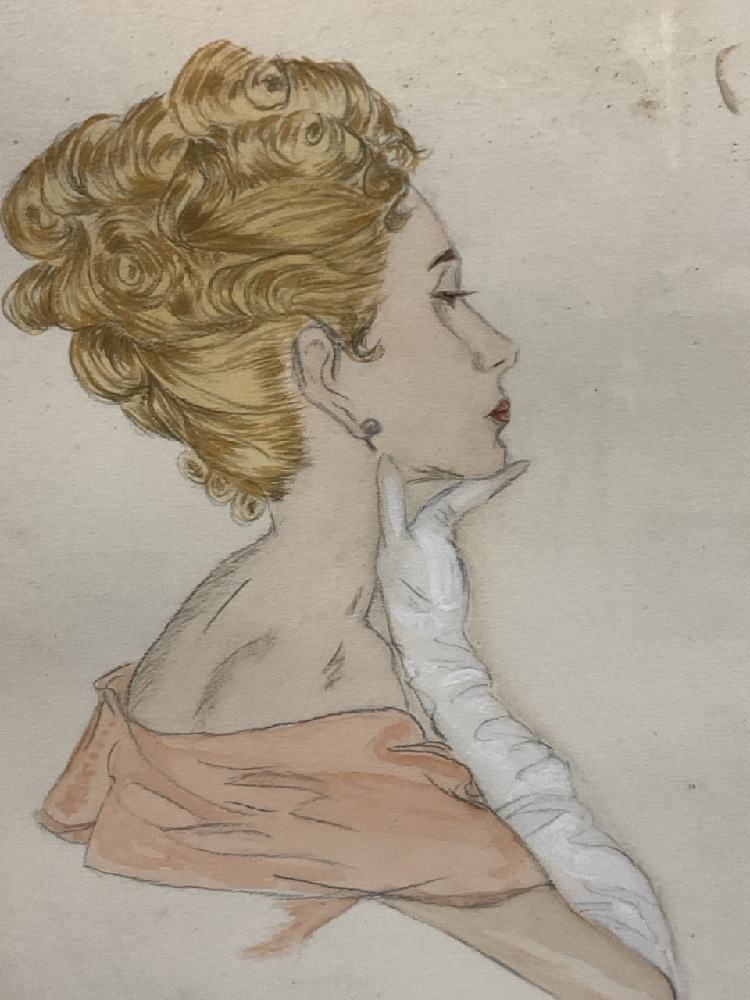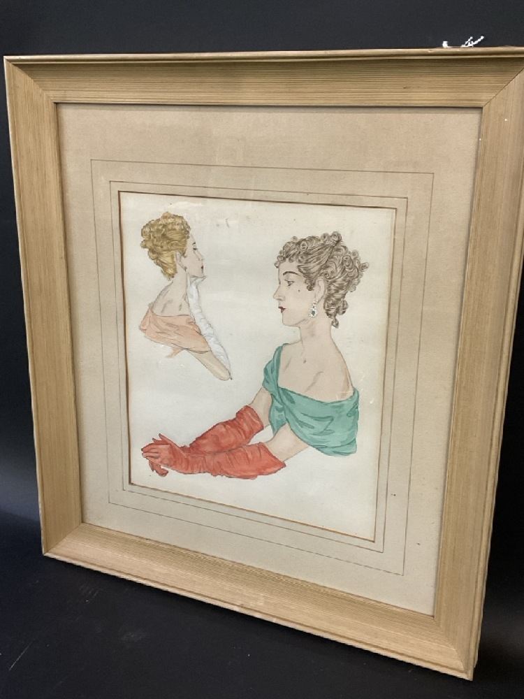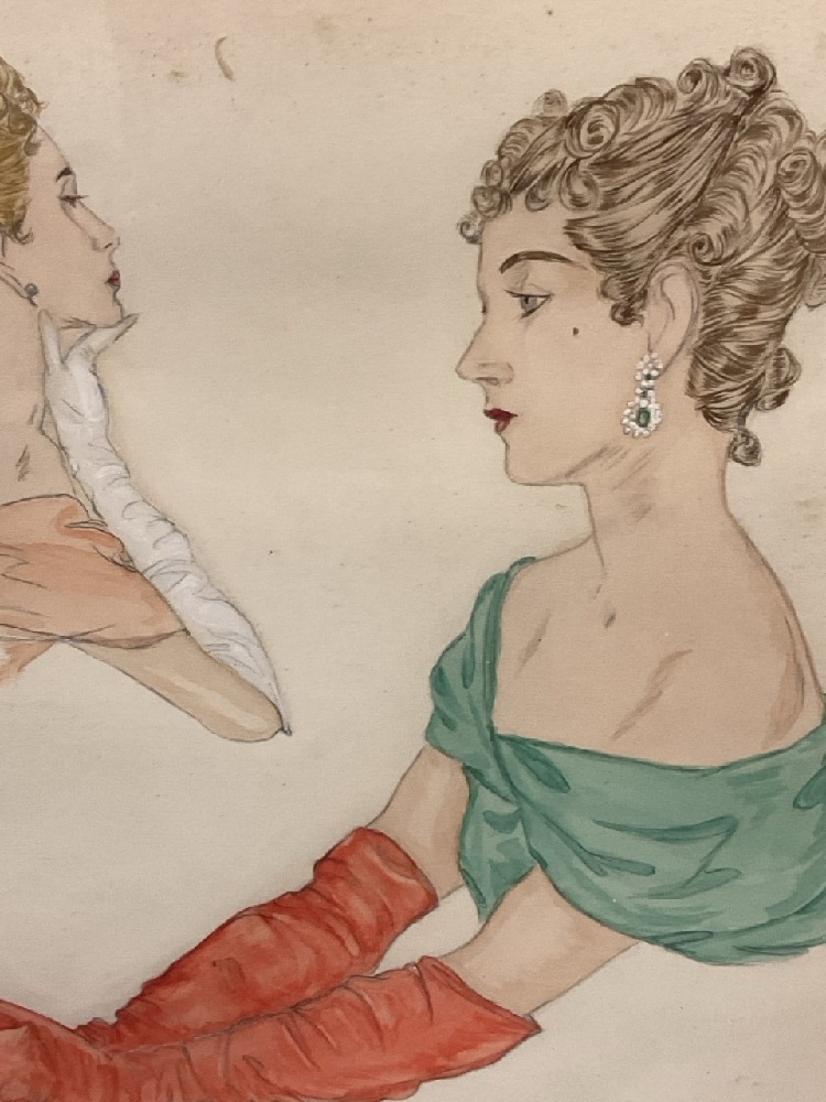 Vintage Fashion Sketch Watercolor on Paper.