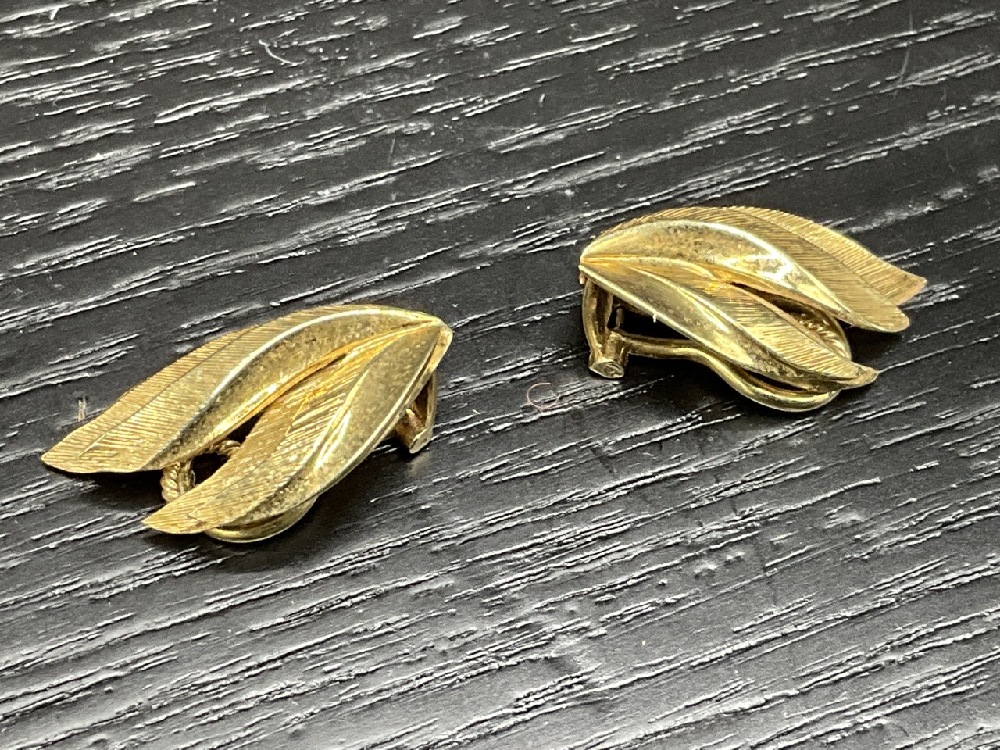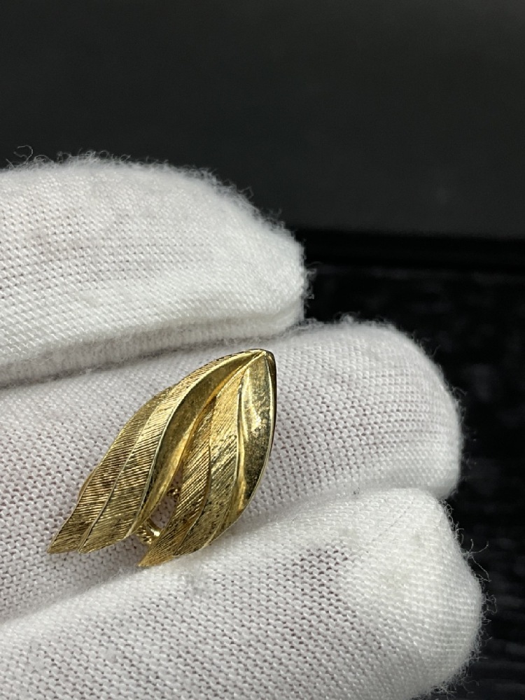 1961 Modernist Design 14K Yellow Gold Feather Earrings. Signed Grosse, Made in Germany.
