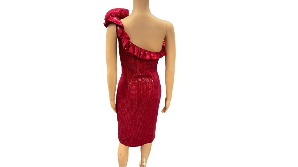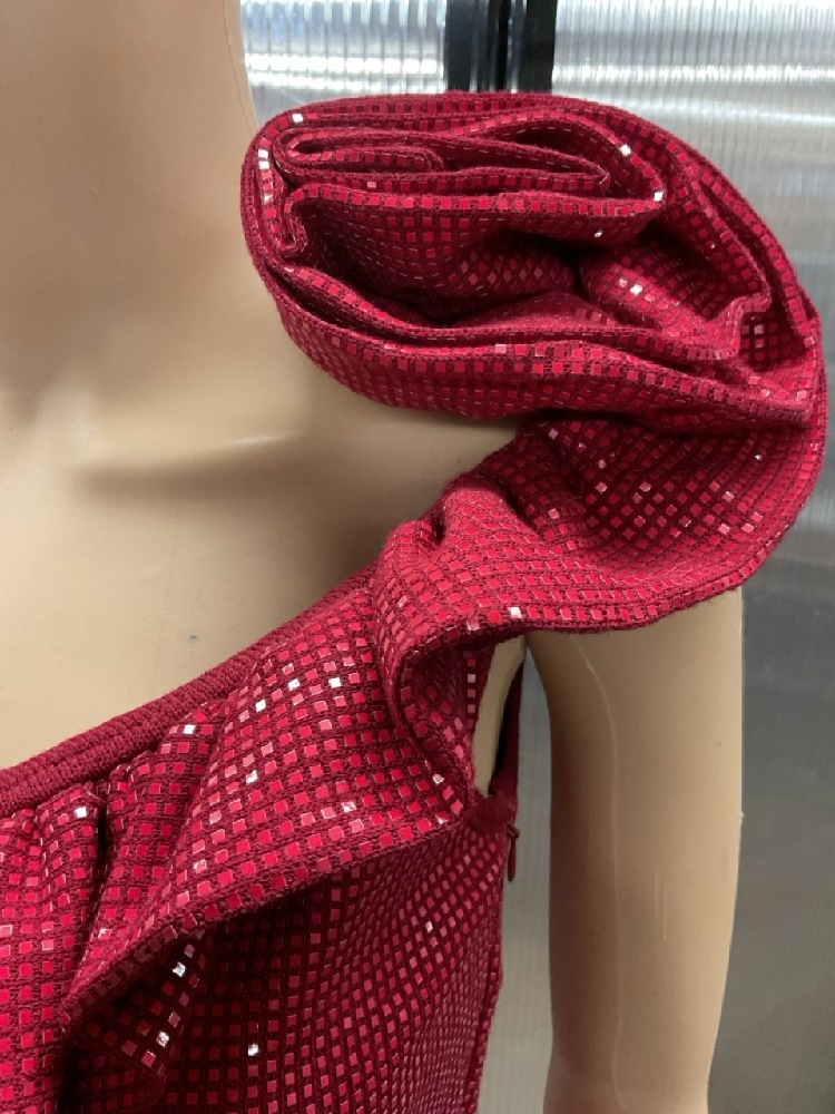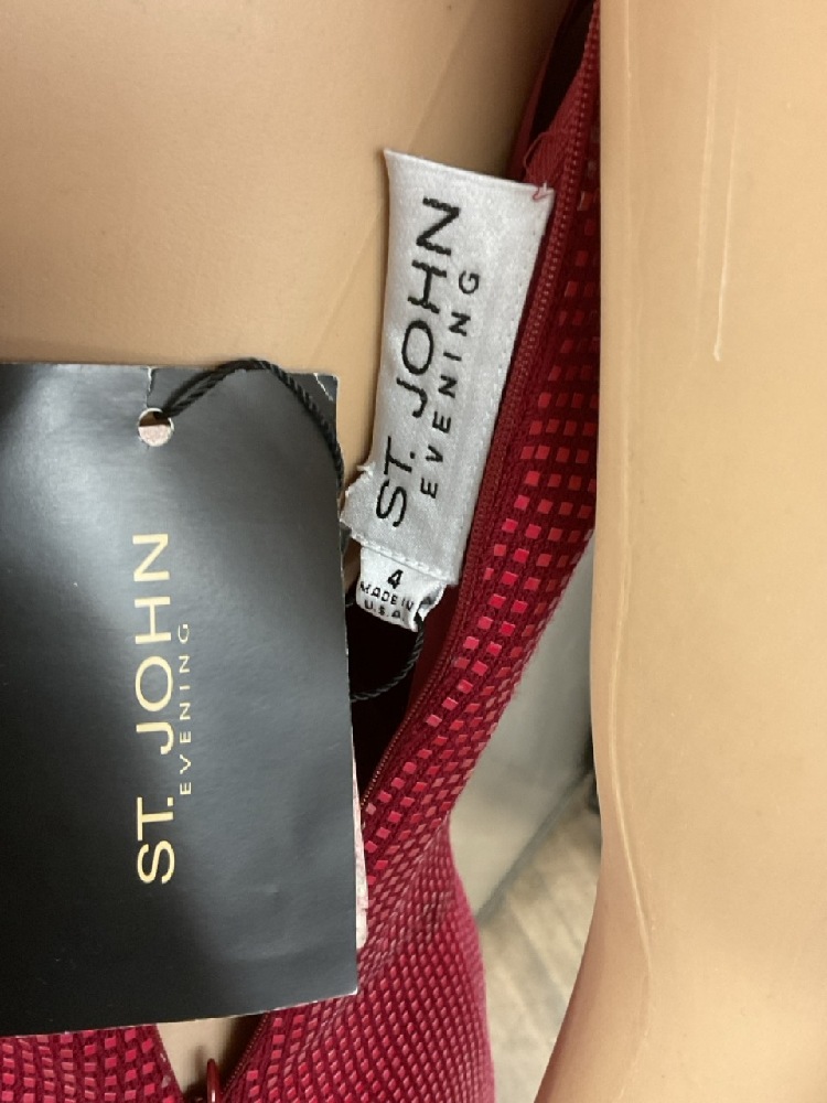 St. John Evening Wild Fire Red Off The Shoulder Dress NWT $1995.00. Original tag attached. Side zip closure.