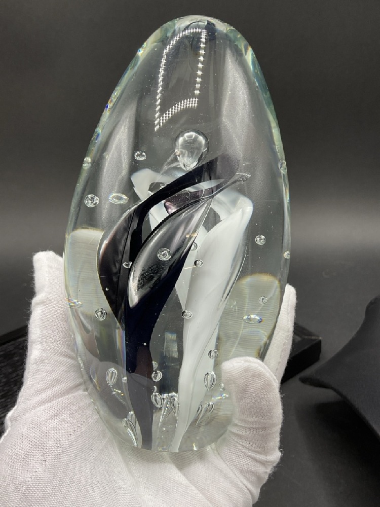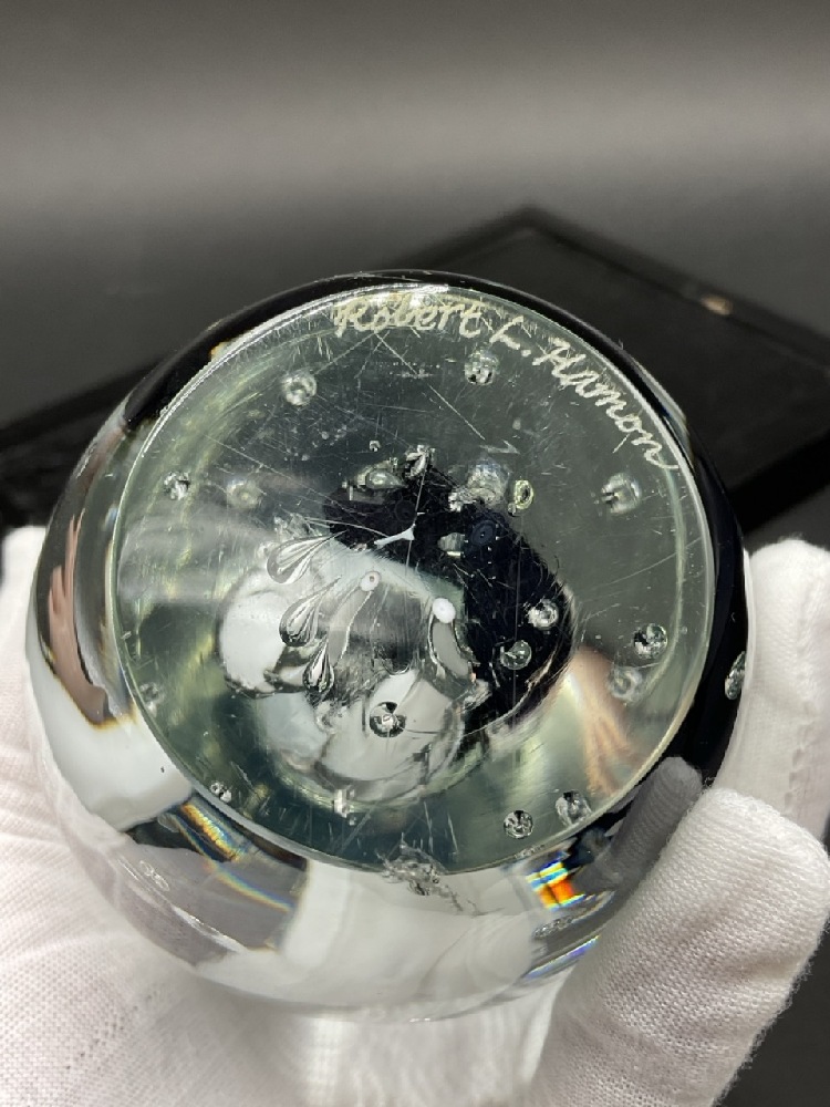 Robert L Hamon Signed Studio Art Glass Paperweight. Scratches and chips noted. Repair needed.