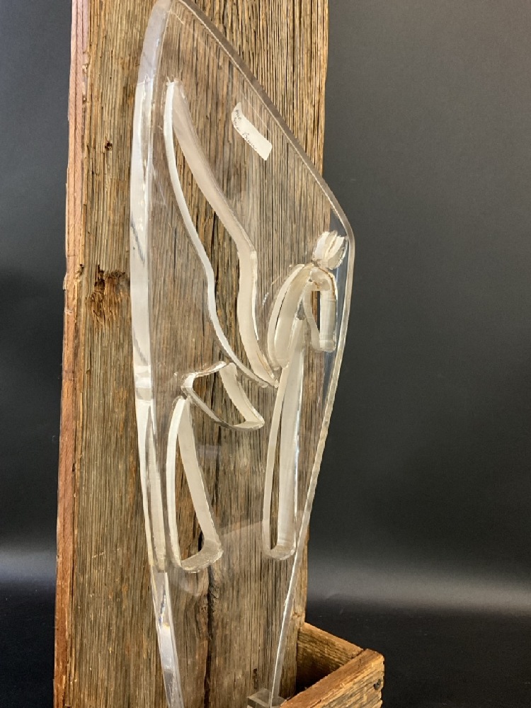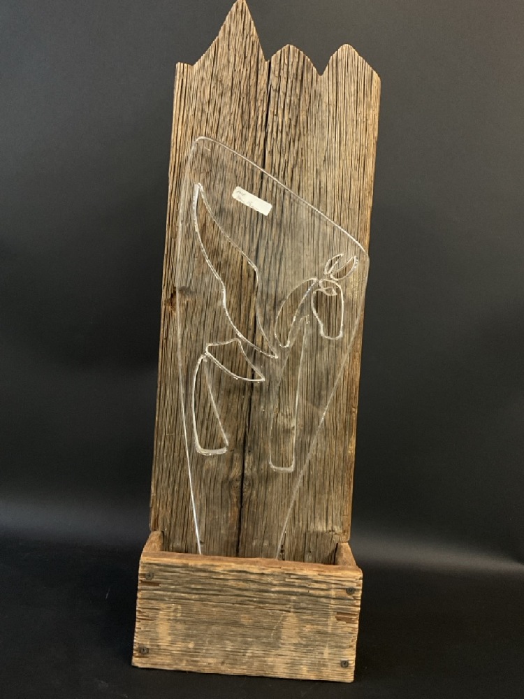 Lucite Horse In Wooden Planter