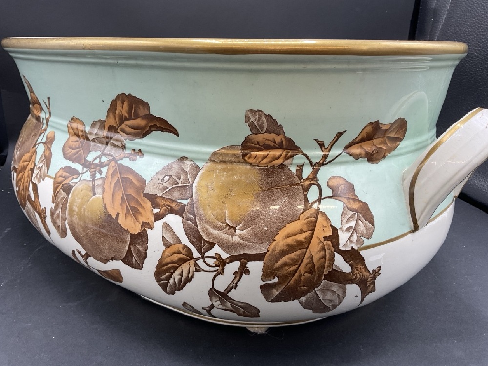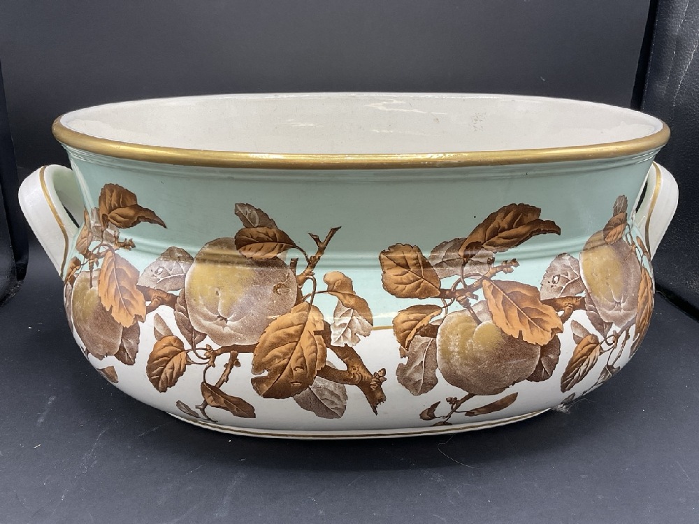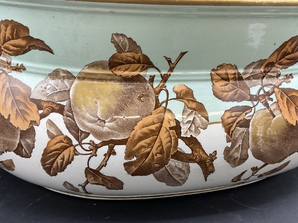 19th century English Ironstone Transferware Basin. Ripened fruit on branch pattern. . C. Brown Westhead Moore & Co. Some crazing noted and spider hairline seen in interior base. Please see photograph preview.