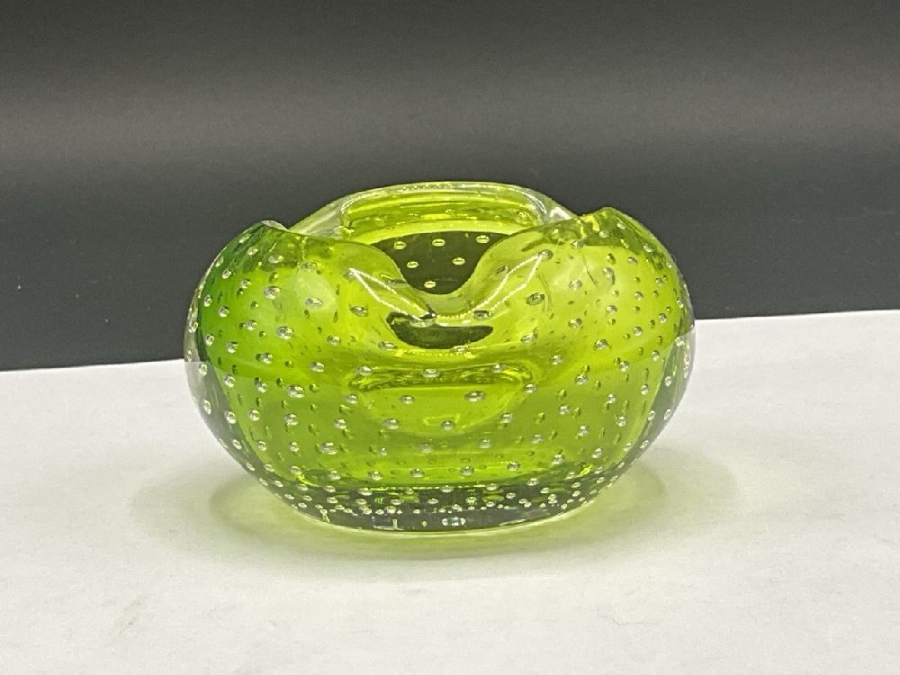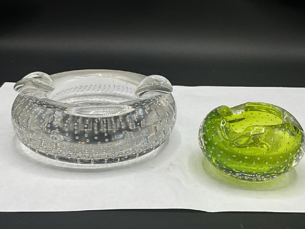 Murano Glass Controlled Bubble Cigar and Cigarette Ashtray.