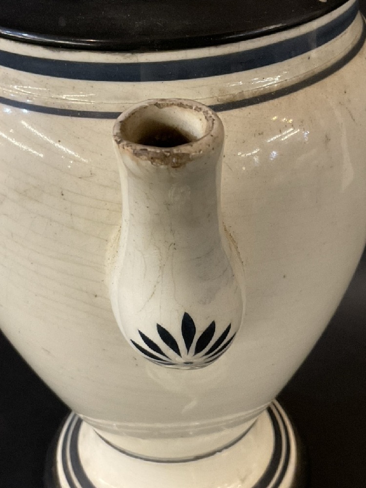 Small flea bite on the spout. Hairline crack by leaves, see images.