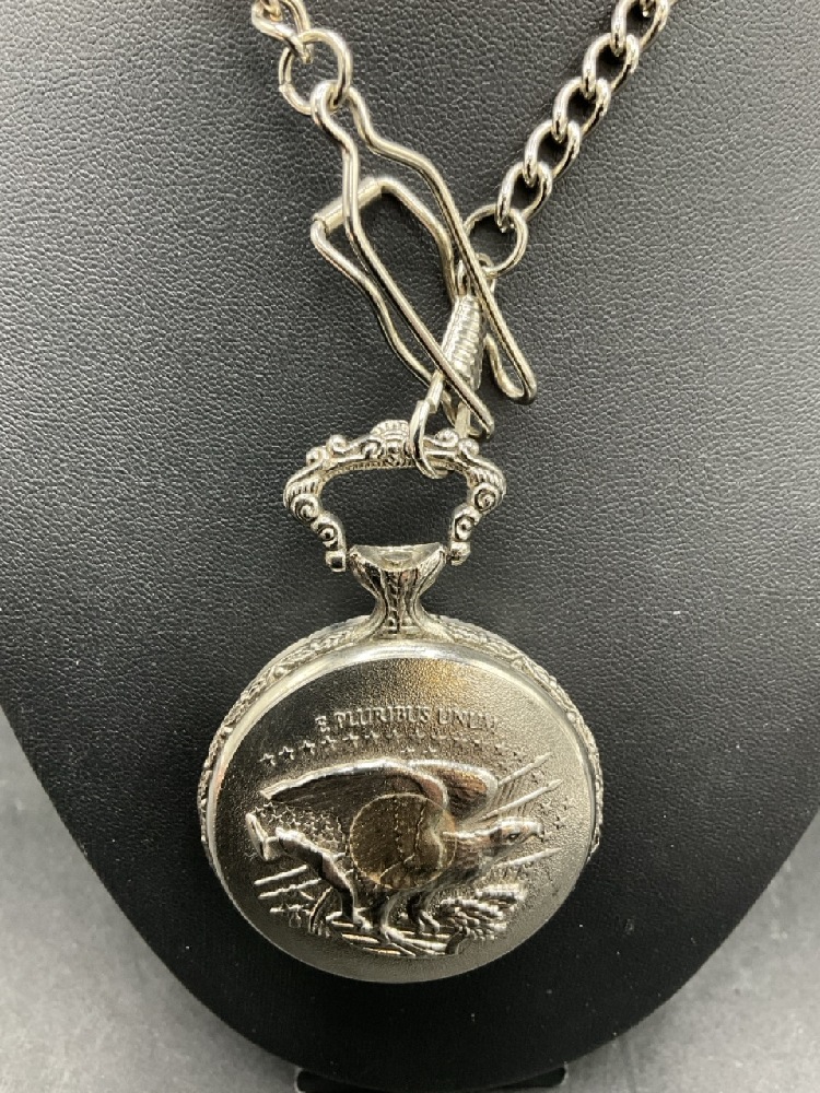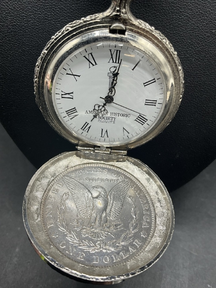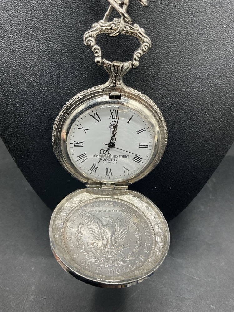 1879 Morgan Silver Dollar American Historic Society Pocket Watch with Chain