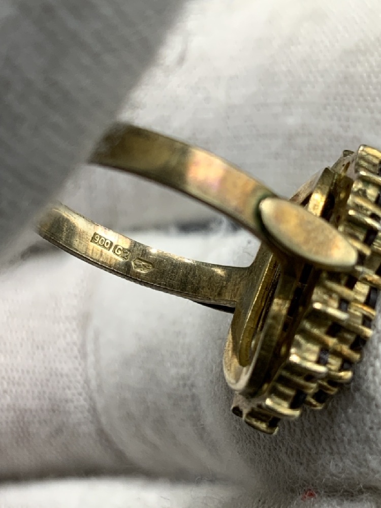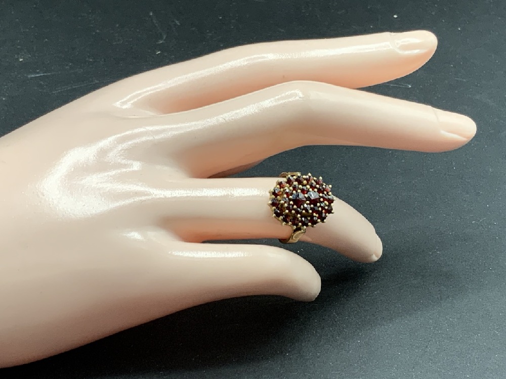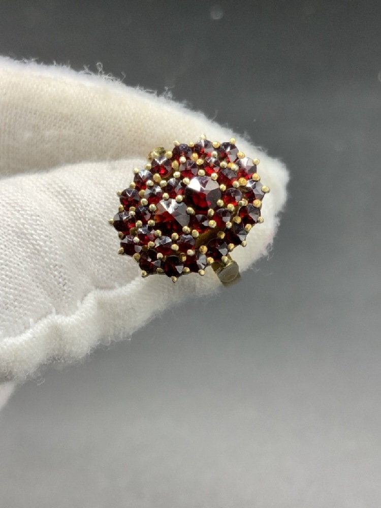 European Bohemian Garnet Ring Size 6. Ring marked with jewelry touch marks and 900.