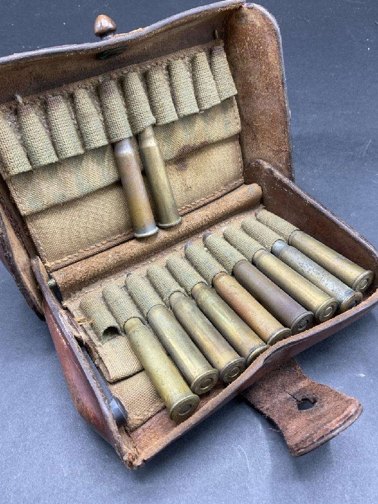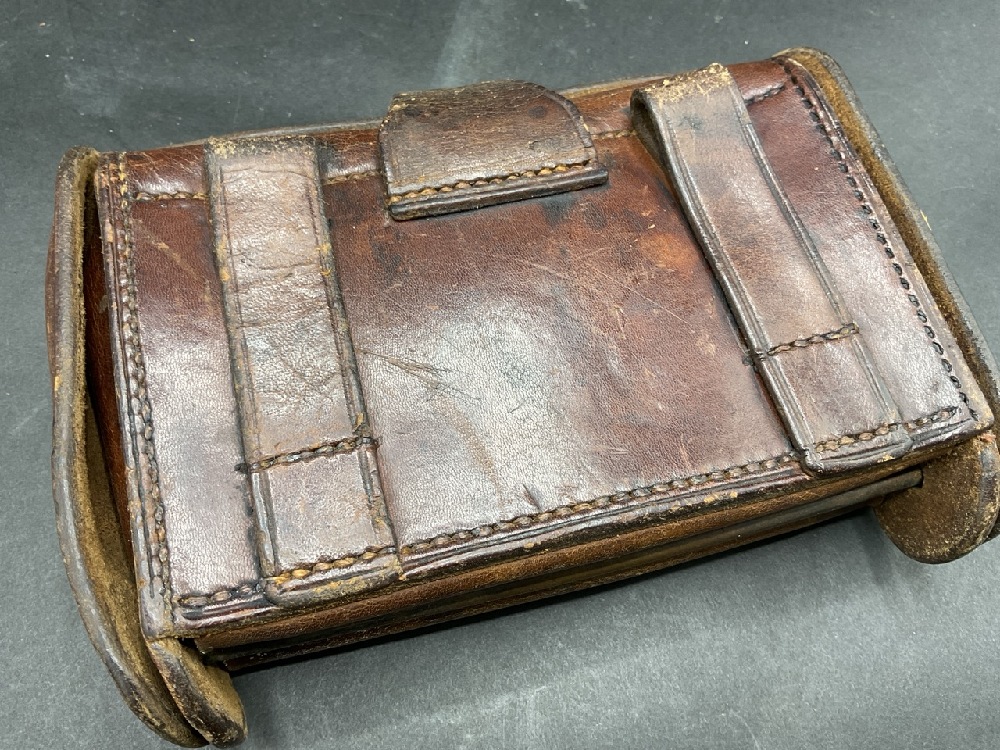 1908 Rock Island Arsenal, Mckeever Trap Door Cartridge box brown leather without belt has 11 cartridges and tool.