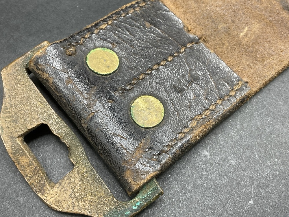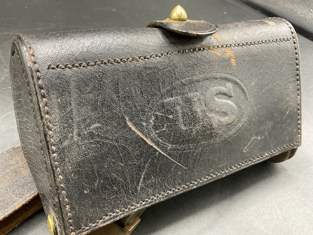 McKeever signed Indian Wars Era Trap Door Cartridge box and U.S. Belt Buckle. c. 1874.