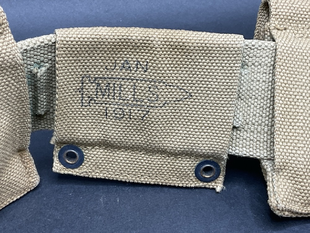WWI Era Mills 1917 Jan Ammo Belt. Canvas Material. Partially filled.