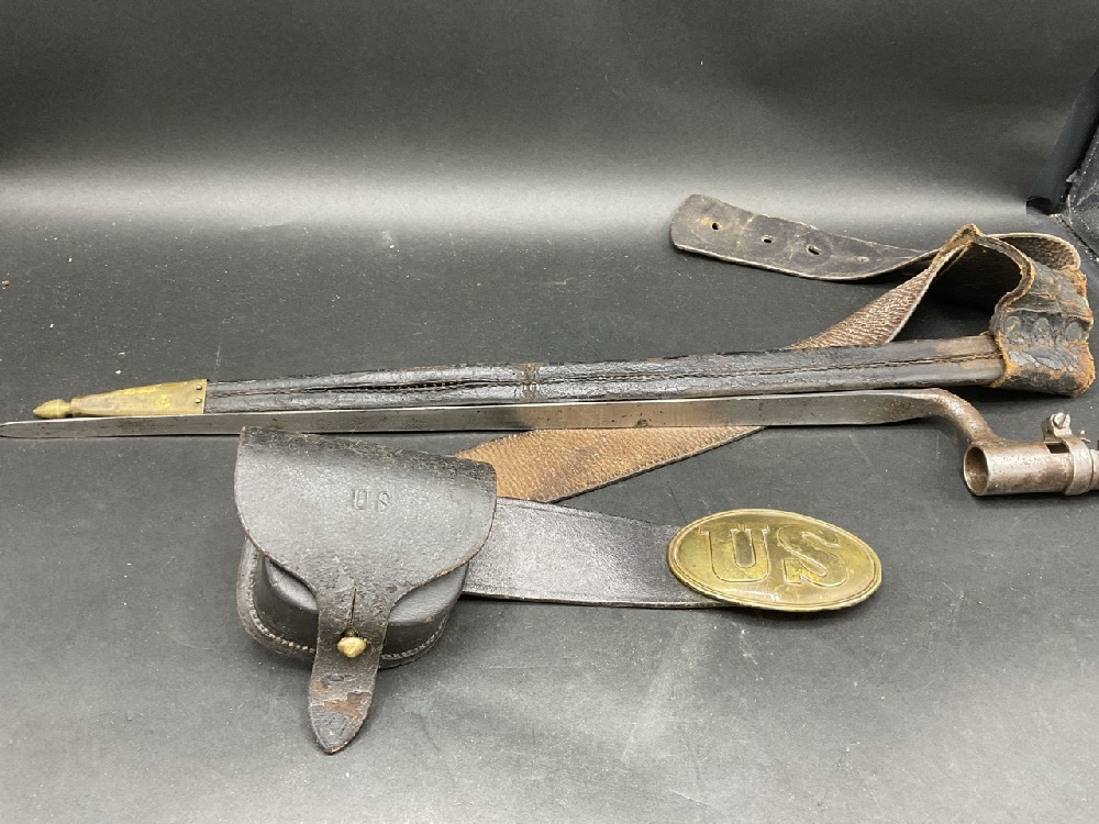 Civil War Hartford Connecticut Union Belt Buckle, Bayonet and Scabbard.