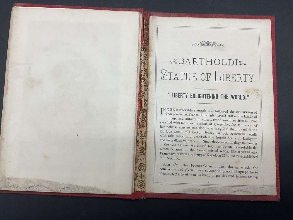 Scarce 1885 Adolf Witteman Souvenir Brochure Bartholdi Statue of Liberty, Enlightening the World. Original hardcover pocket size. Please note some staining present.