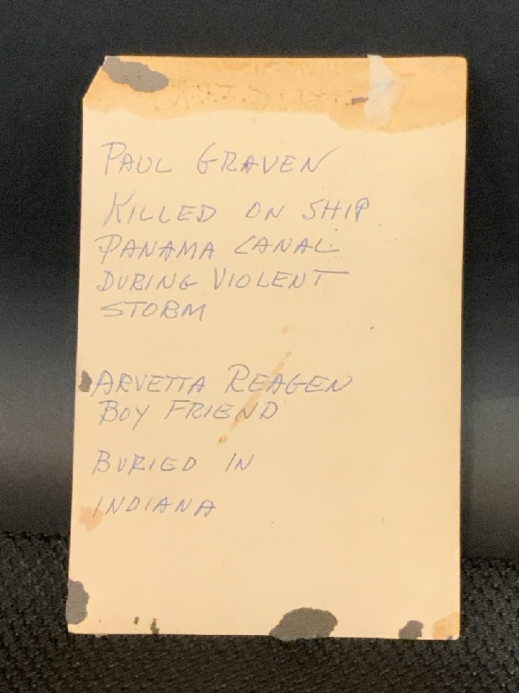 Original Photograph of Camp Columbia, Havana, Cuba 1899 by Waterman of Chicago, ILL. And a Real Photo Postcard of Paul Graven Killed on Ship in Panama Canal during a violent storm. Buried in Indiana.