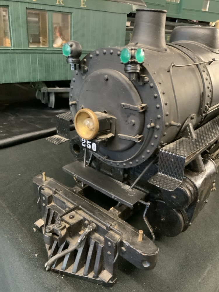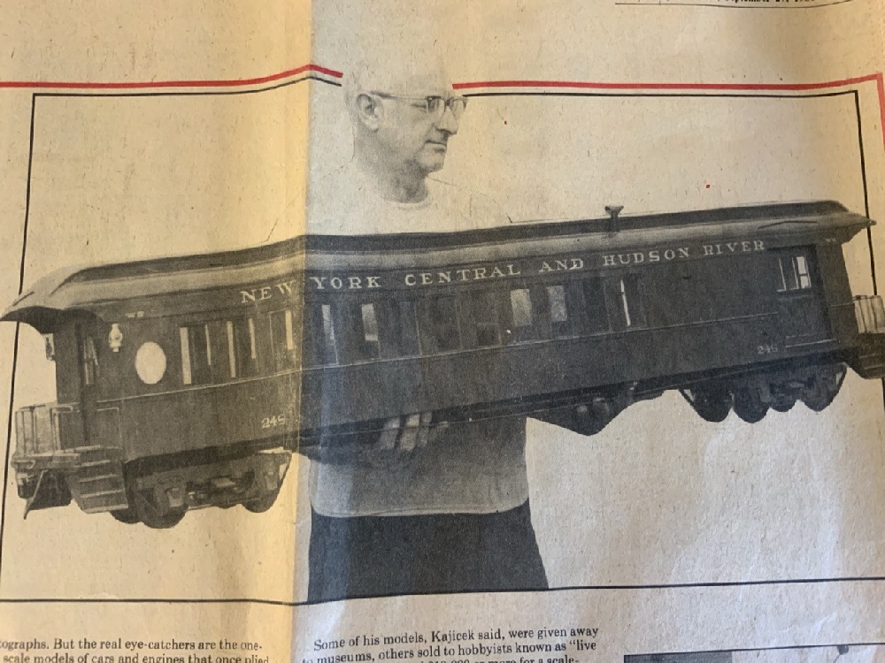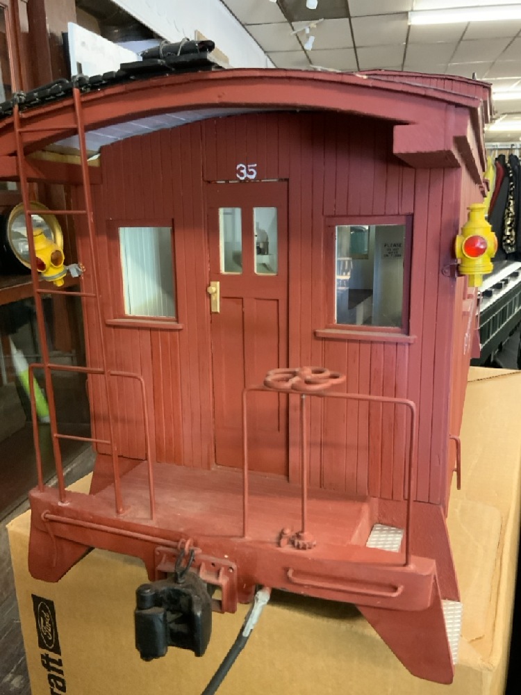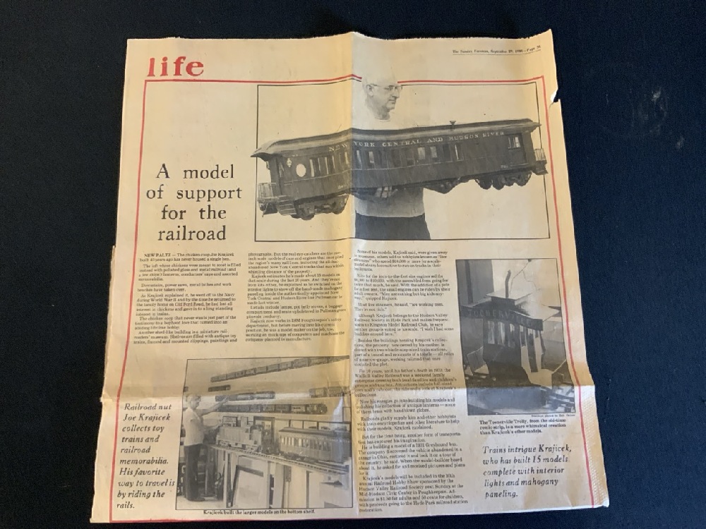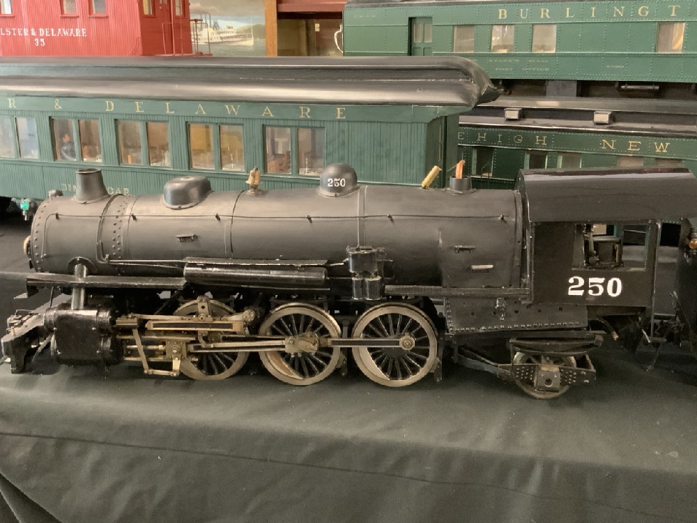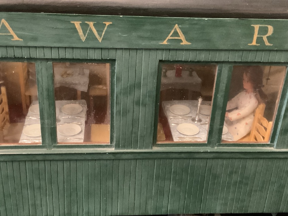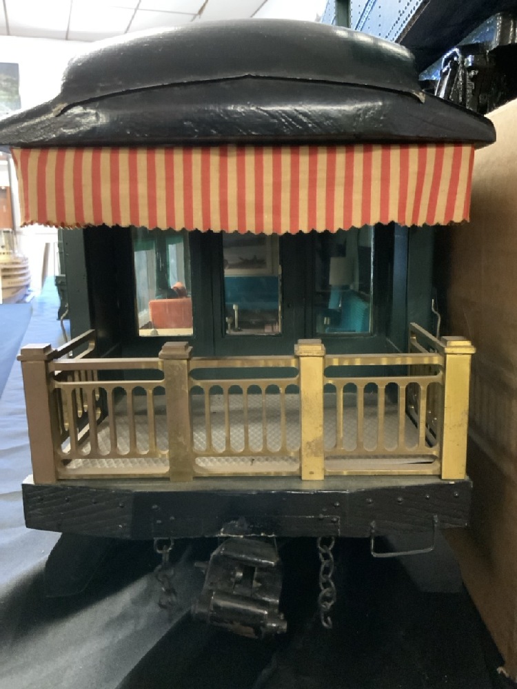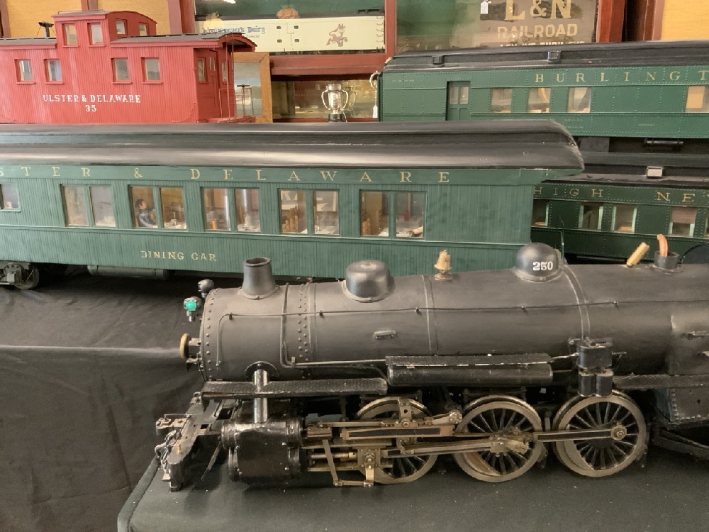Ulster & Delaware Railroad Six Piece Large Scale Train Model Set. Hand Crafted by Joe Krajicek. Lighted cars with intricate detail and mahogany paneling.