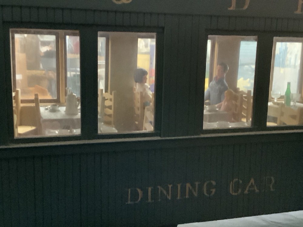 Dimensions: Engine 250, 35” L x 11” H x 8 1/2” D, Coal Car 25” L x 11” H x 8” D, Dining Car 65” L x 16” H x 10” D, Lehigh* New England Car 62” L x 11 1/2” H x 8” D, Burlington Car 63” L x 11 1/2” H x 8” D,Ulster & Delaware 35 Caboose 34” L x 14 1/2 “ H x 10” D