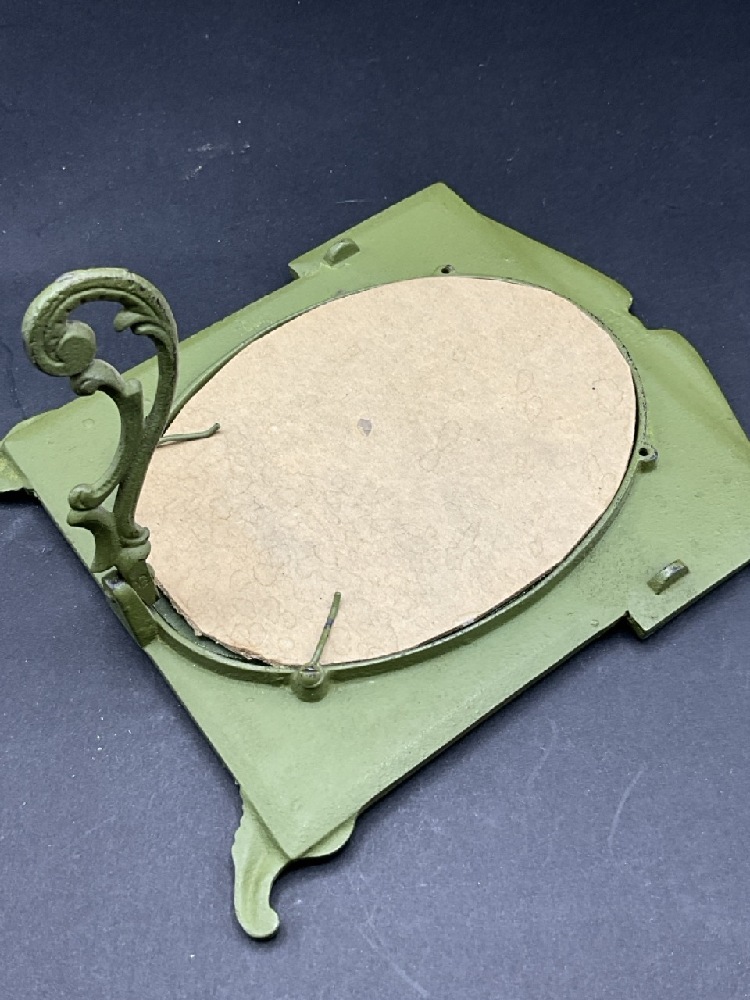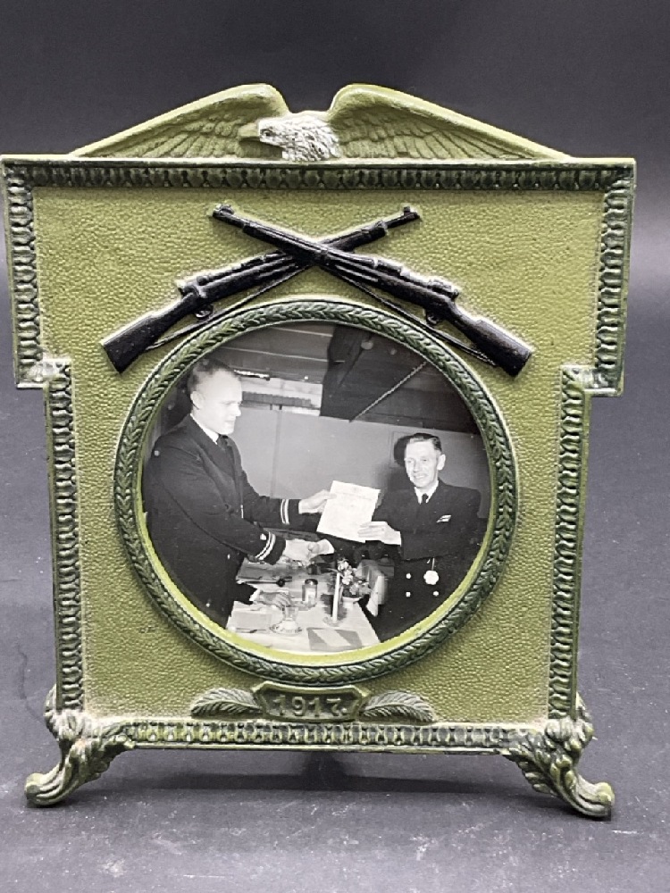 WWI Era Picture Frame Dated 1917. Painted green with black painted crossed rifles.
