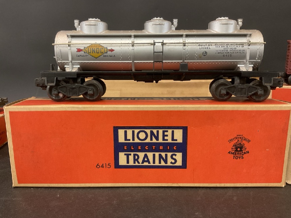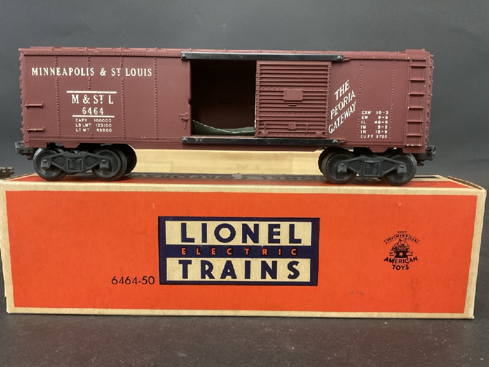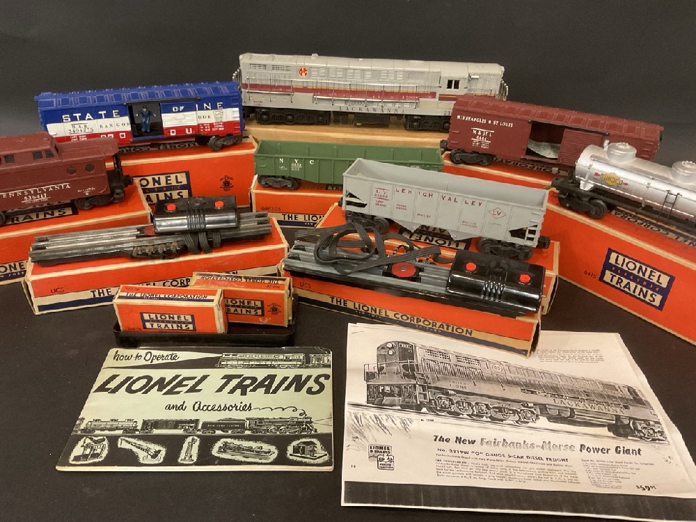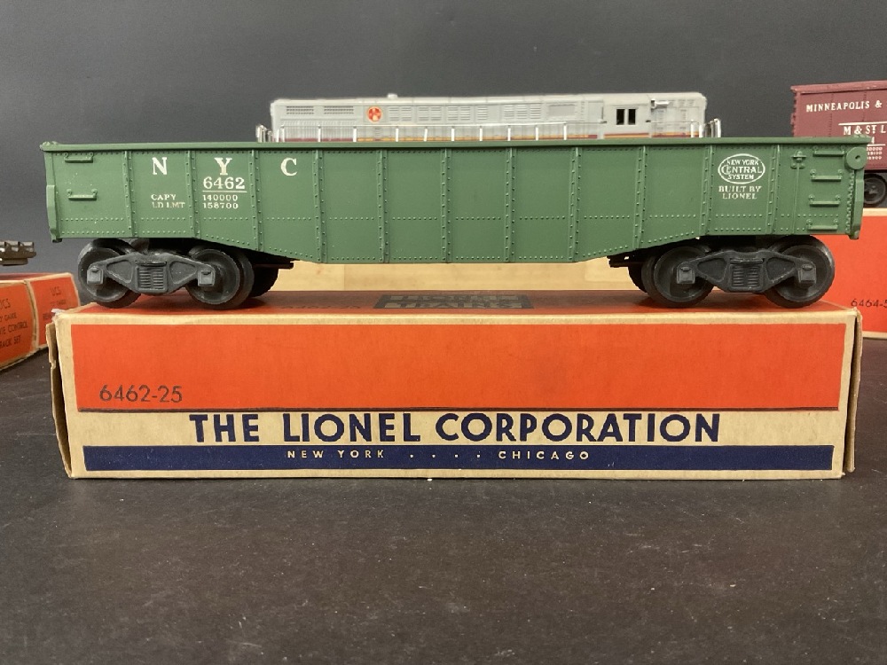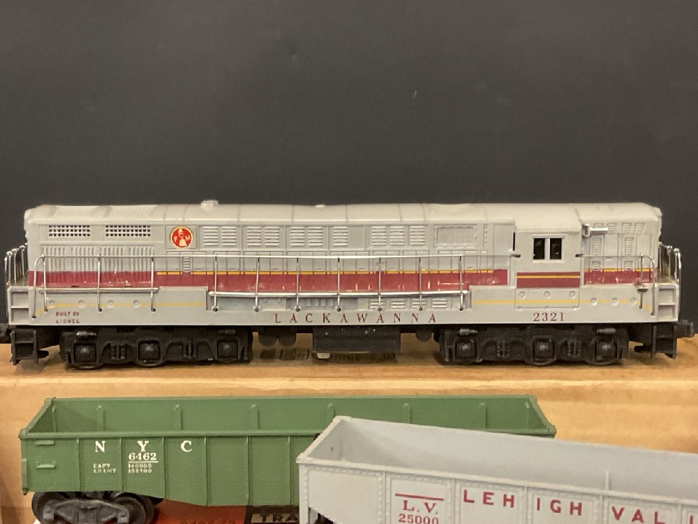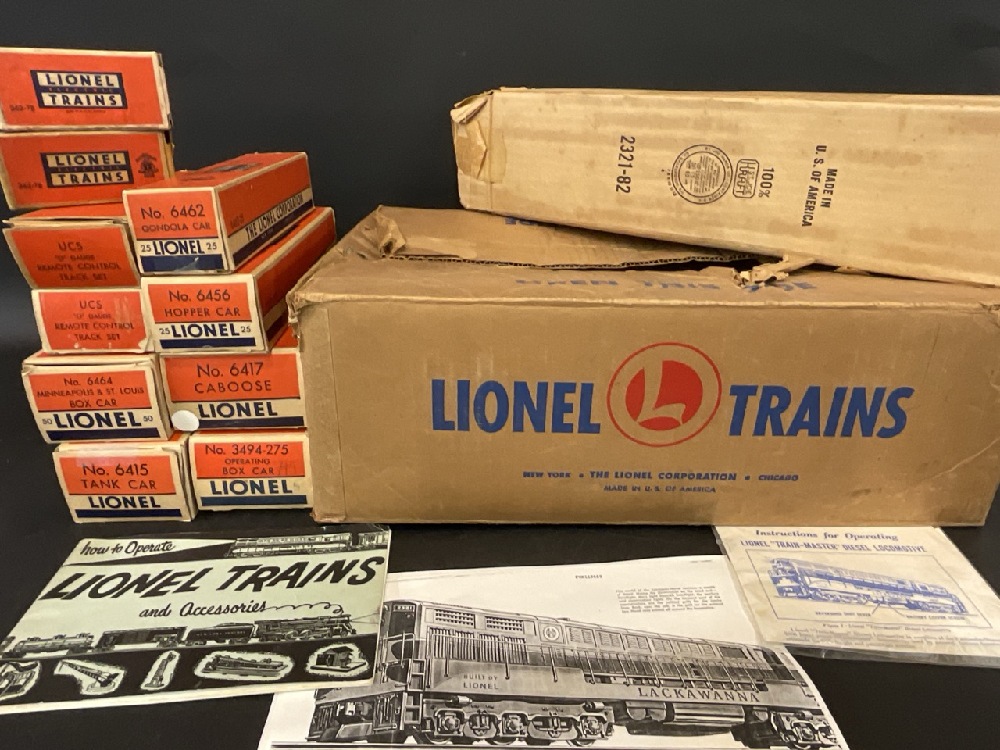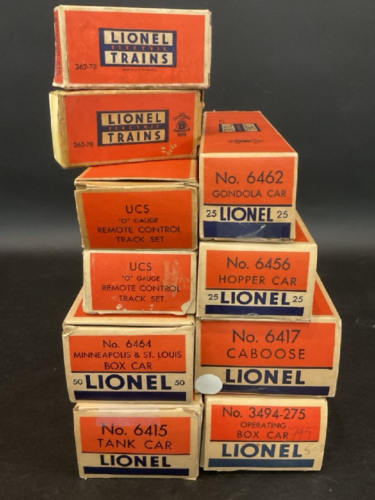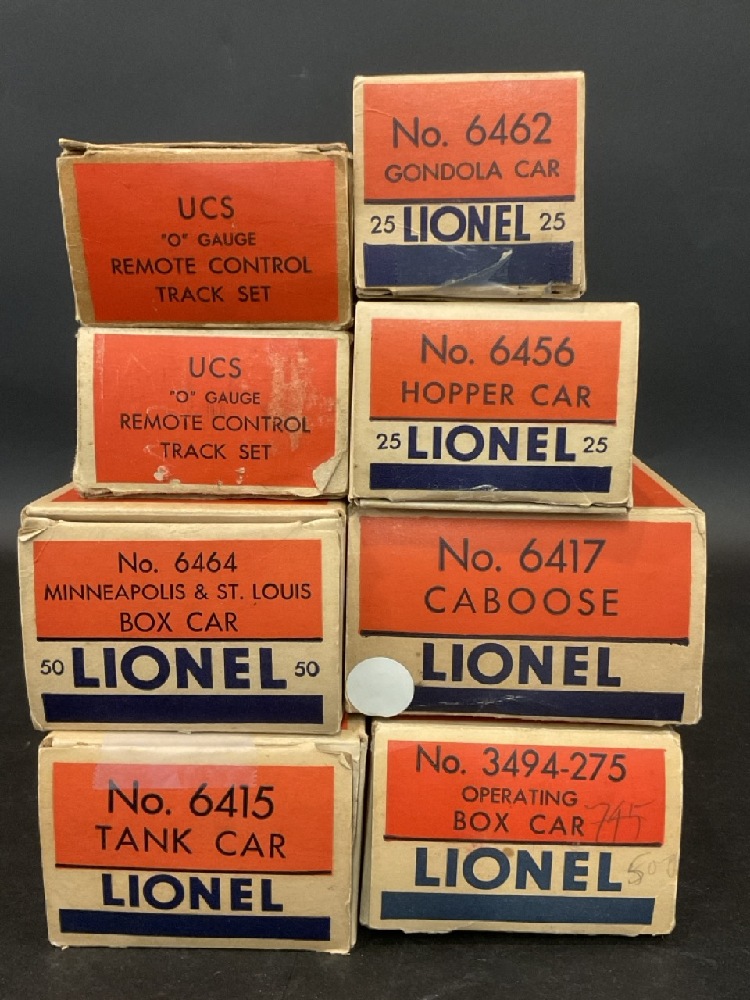 Lionel Train Lot Including: 362-78 Barrels, UCS “ O” Gauge Remote Control Track Set (2) , No. 6464, No. 6415, No. 6462, No. 6456, No. 6417, No. 3494-275, Lackawanna 2321. In Original Boxes