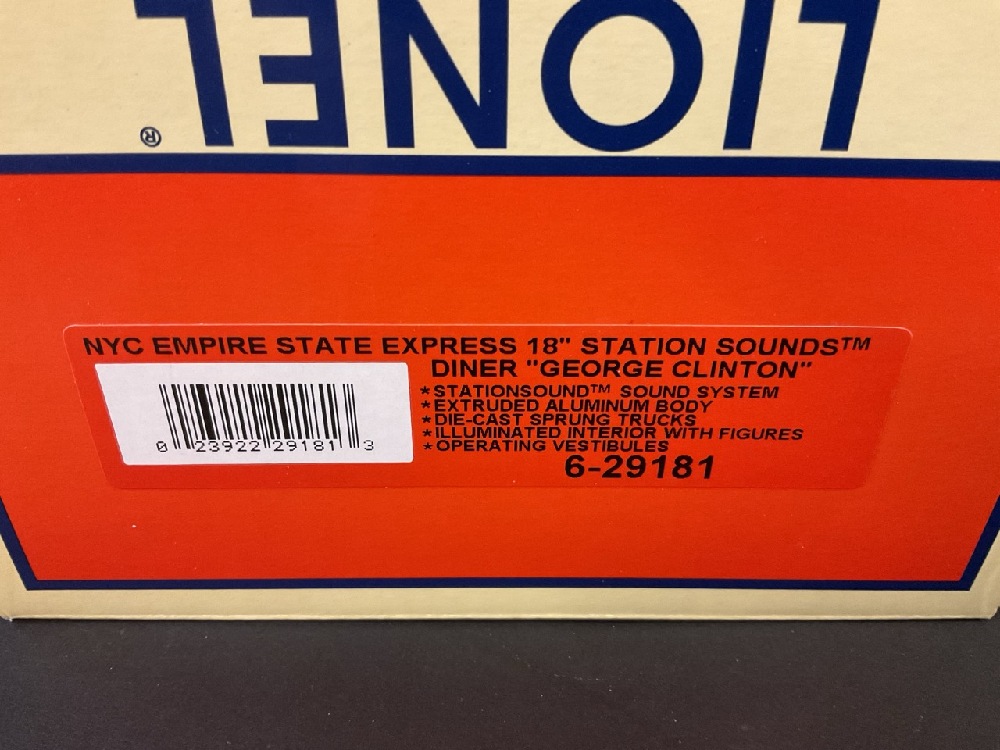 Lionel NYC Empire State Express 18” Station Sounds Diner “George Clinton” - 6-29181