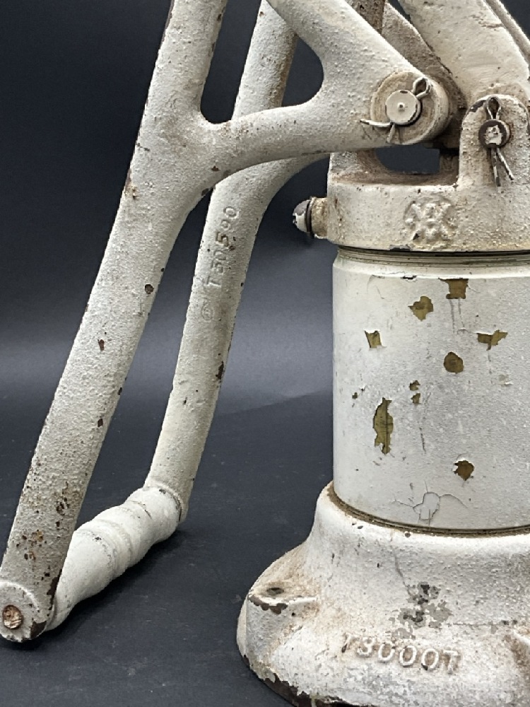 Antique Brass and Cast Iron Water Pump with Wooden Handle.