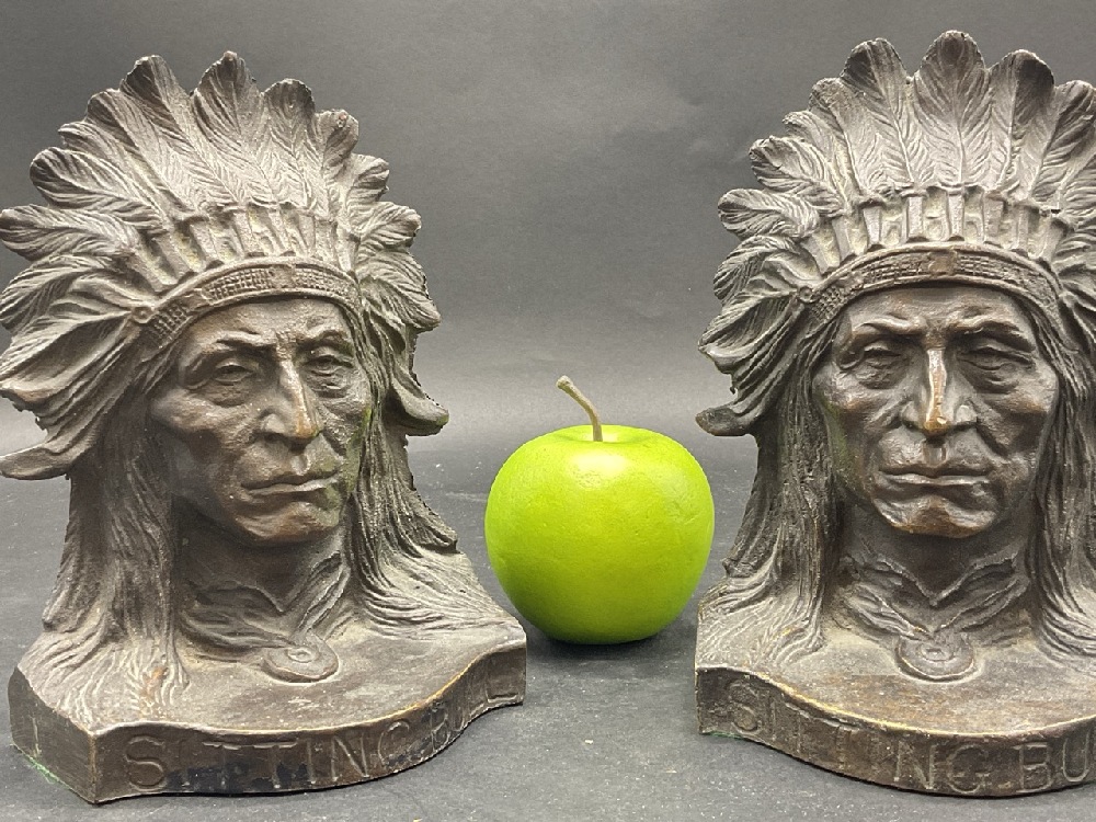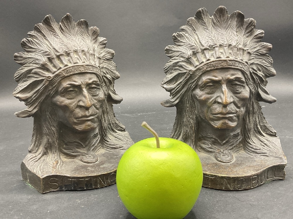 Sitting Bull Bronze American Indian Chief Bookends.
