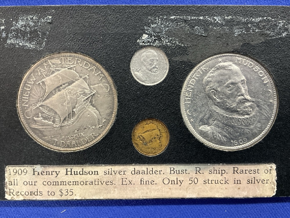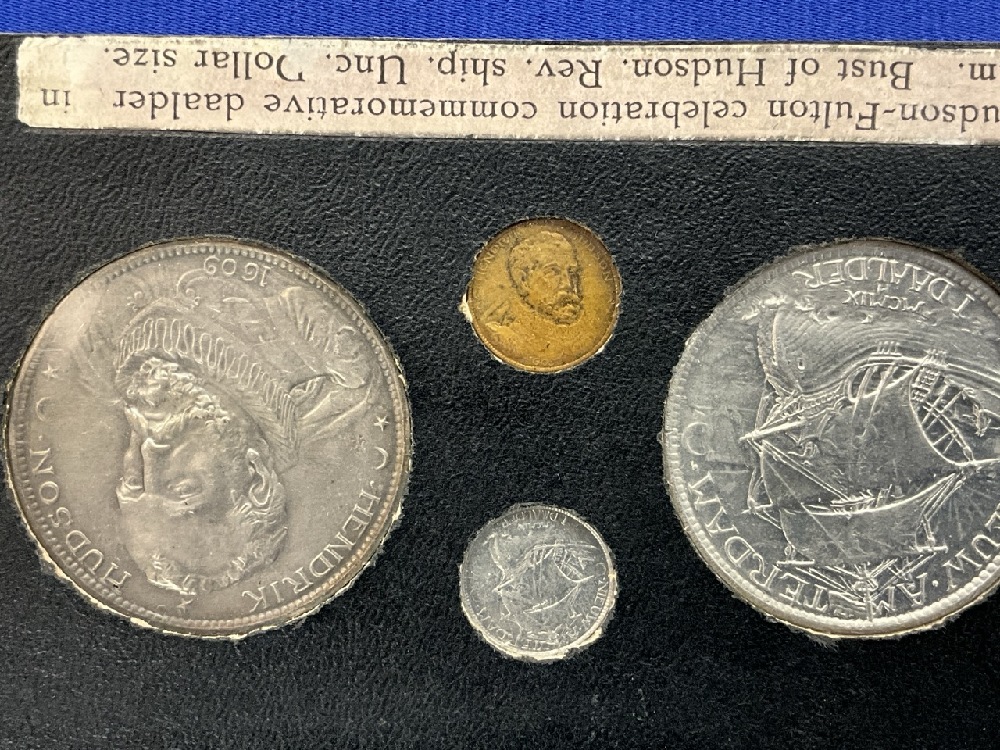 Bust of Hudson Rev. Ship Uncirculated Dollar Size 1909 Henry Hudson silver Daalder Bust Rev. Ship in Silver. Aluminum daalder and copper. Four Piece Set