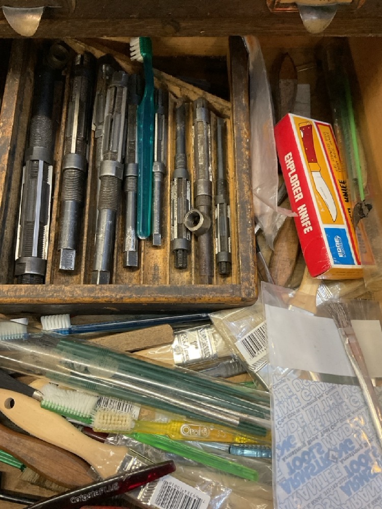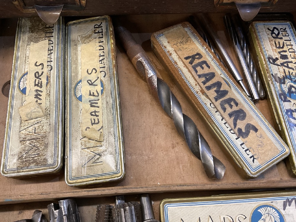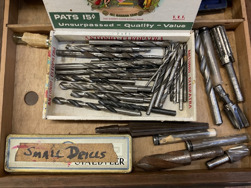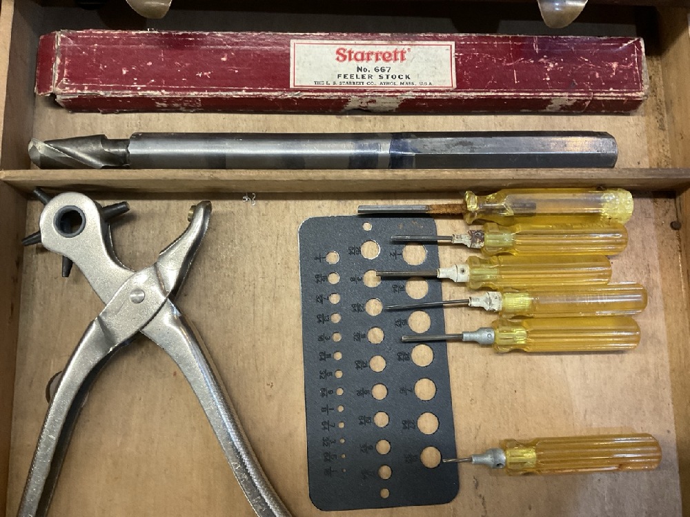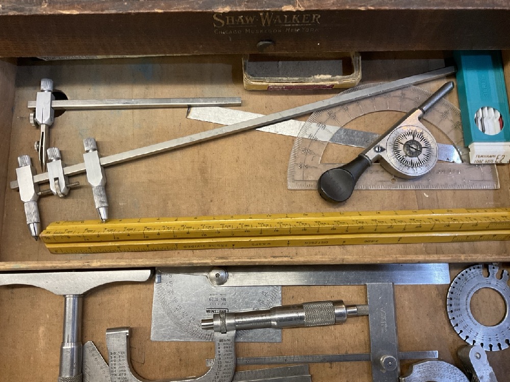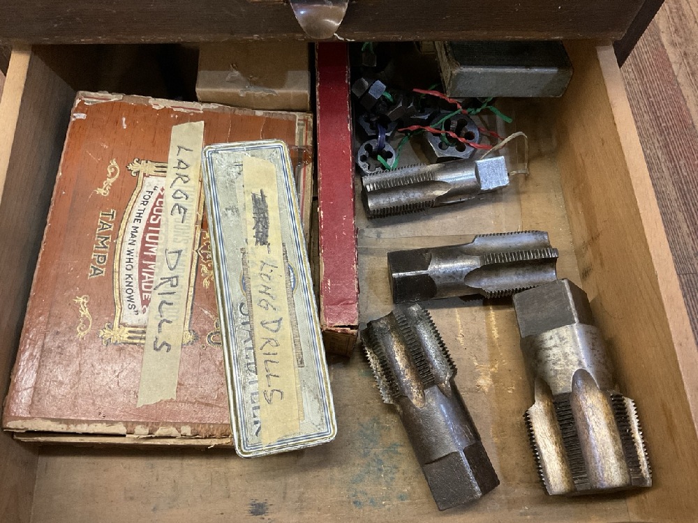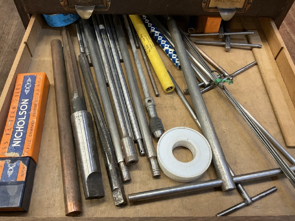 Shaw Walker Nine (9) Drawer Oak Cabinet with Machinist Tools.