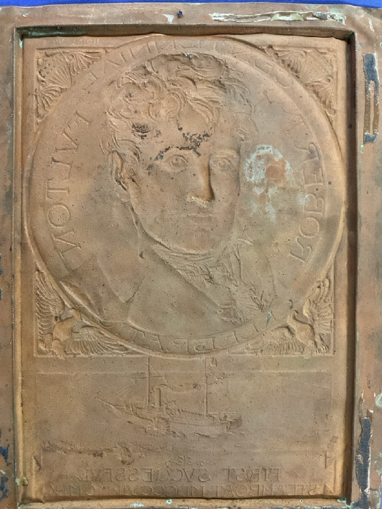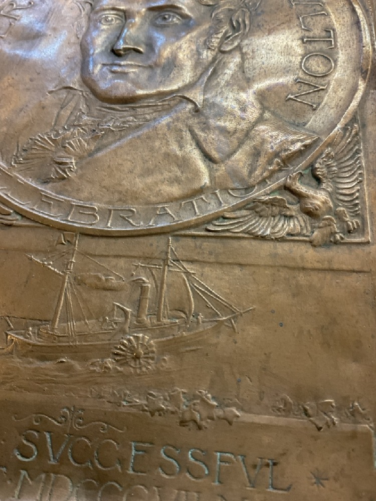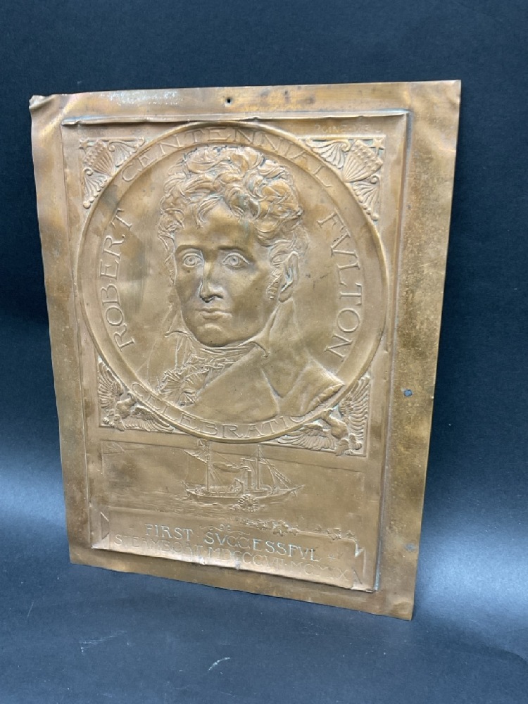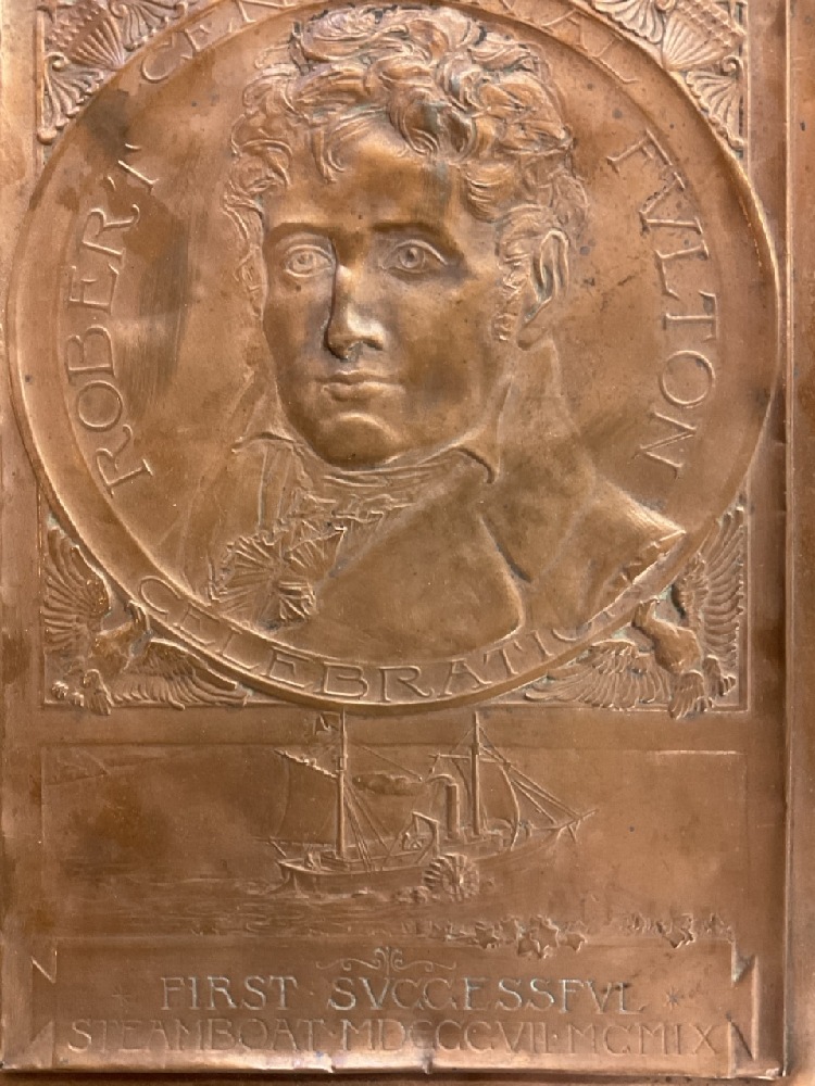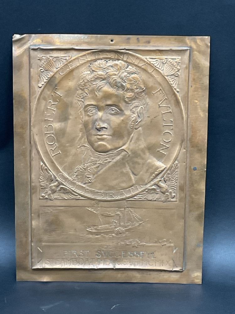 Robert Fulton Hudson Fulton Celebration Copper Plaque. Designed by Roine-Weil 1909 Dated. "First Successful Steamboat MDCCCVII- MCMIX.