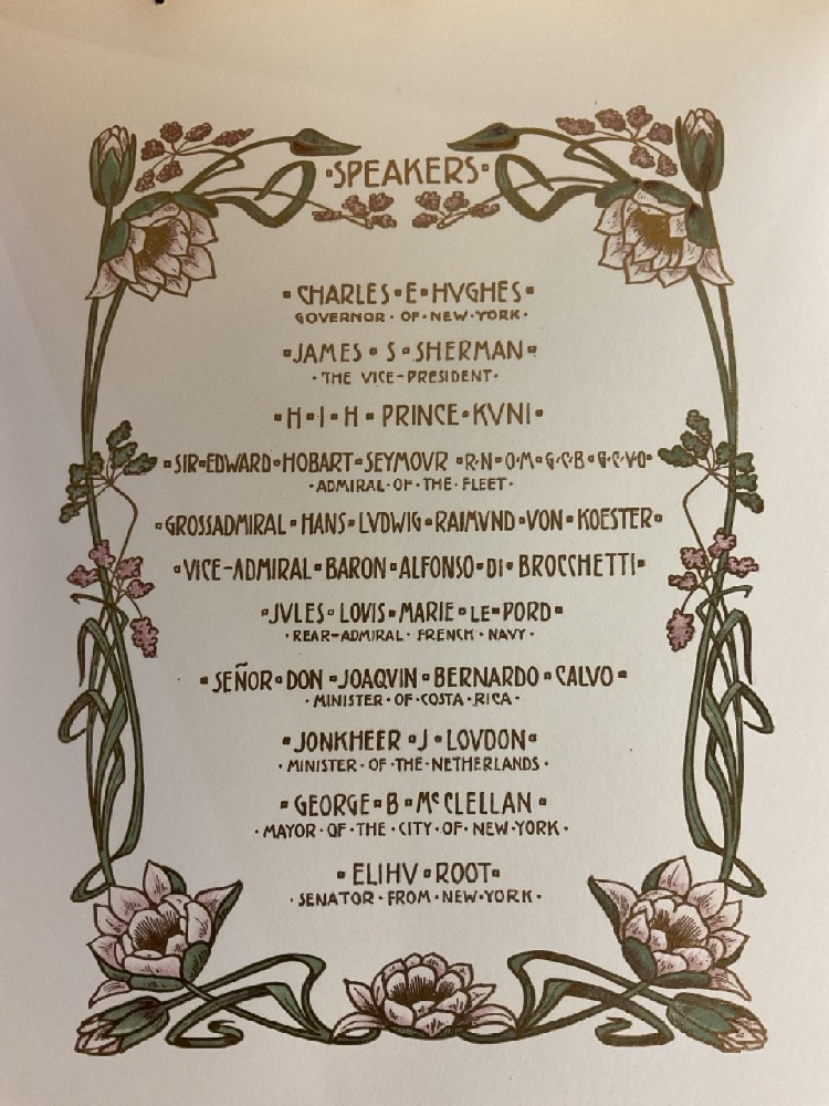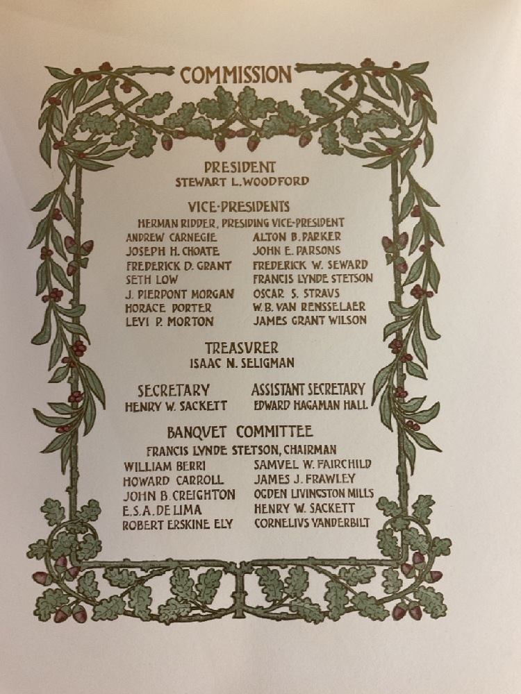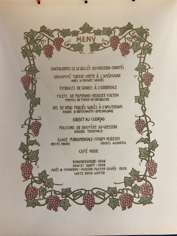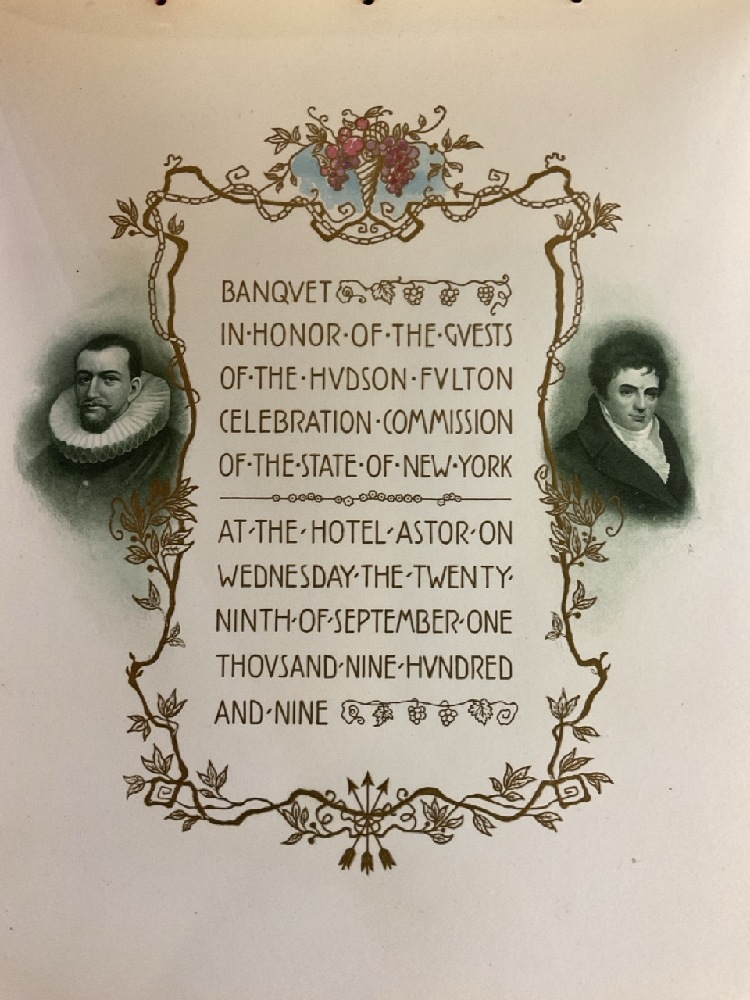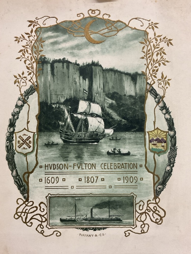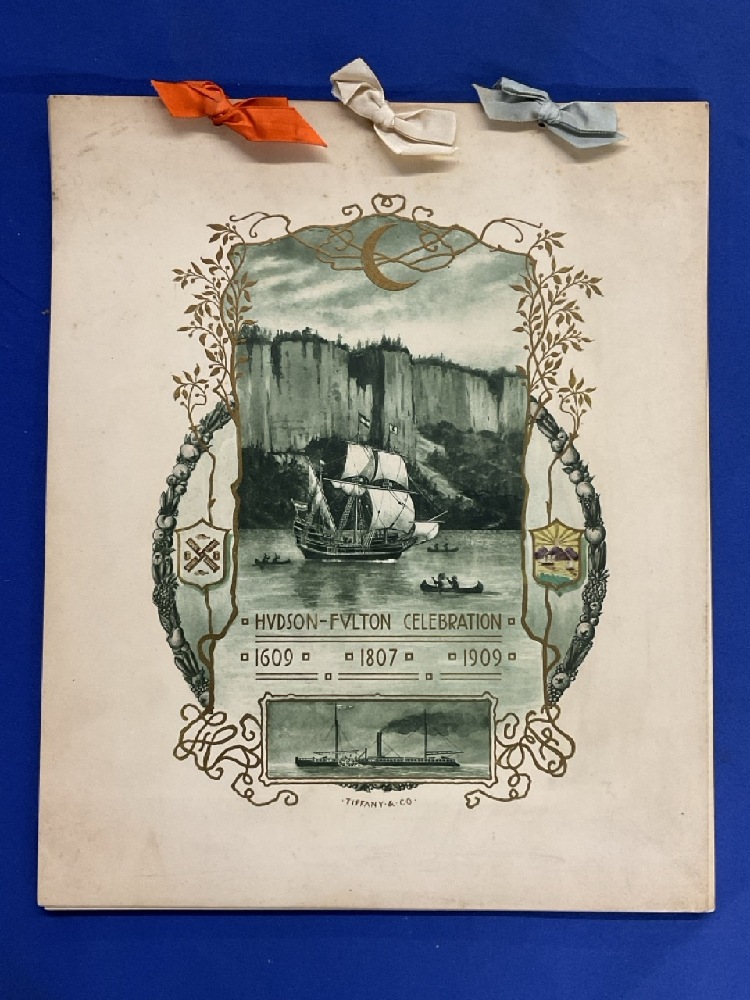 Rare Special Hudson Fulton Celebration Dinner with Governor and Committee. Menu Designed by Tiffany & Co. Pages include menu, guest list and speakers.