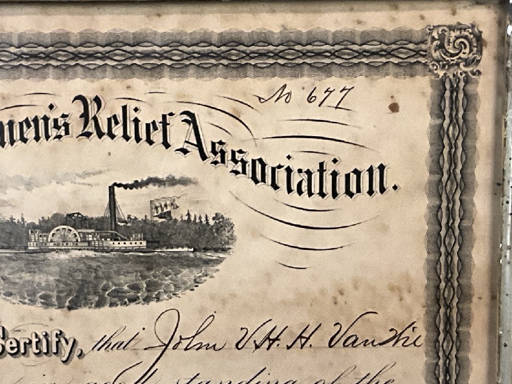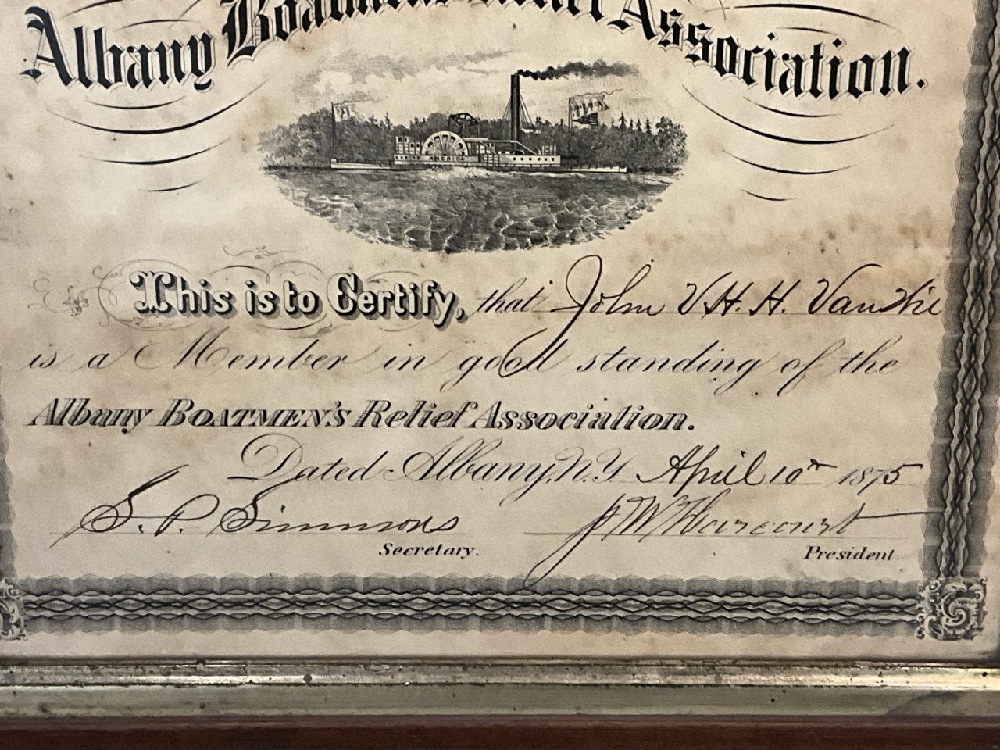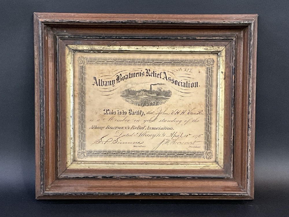 Albany Boatman’s Relief Association Certificate 1875 .
