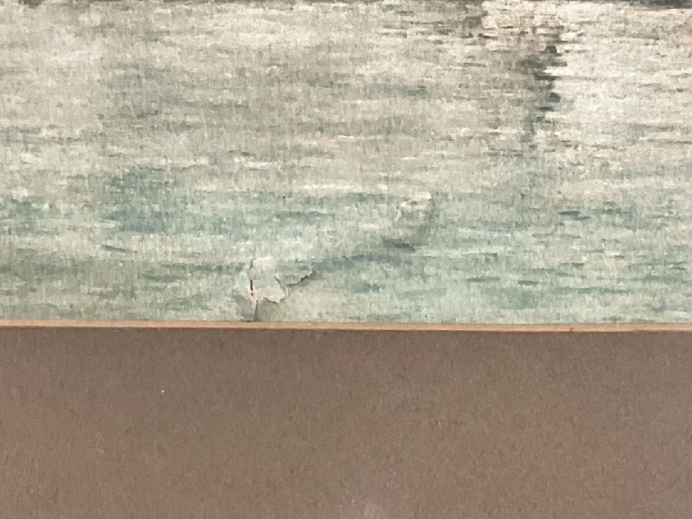Water staining. Small raised tear, bottom center.