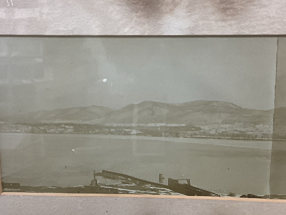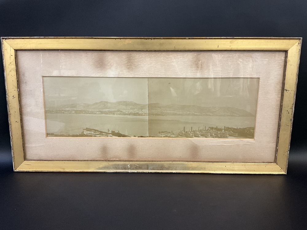 Real Photo Panoramic Hudson River W/ 6 Steamships Docked - Late 19th Century. Creased and foxing noted.