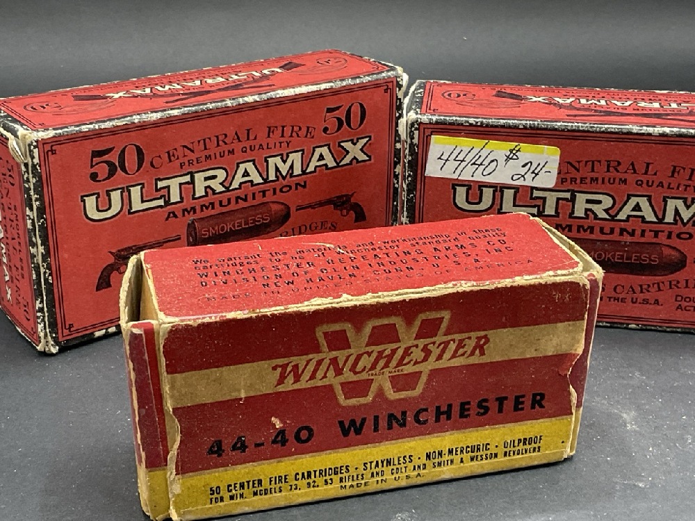 Three Boxes 44-40 Ammo Winchester and UltraMax. One box partially full.