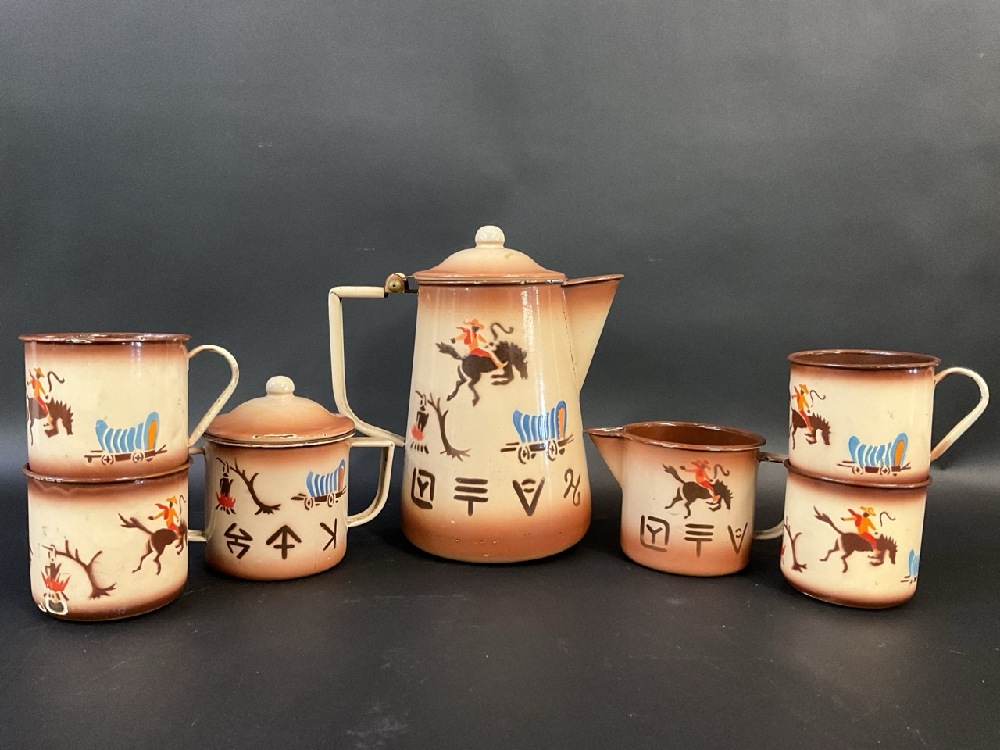 Rancho Style 1950's Chuck Wagon Western Coffee Set