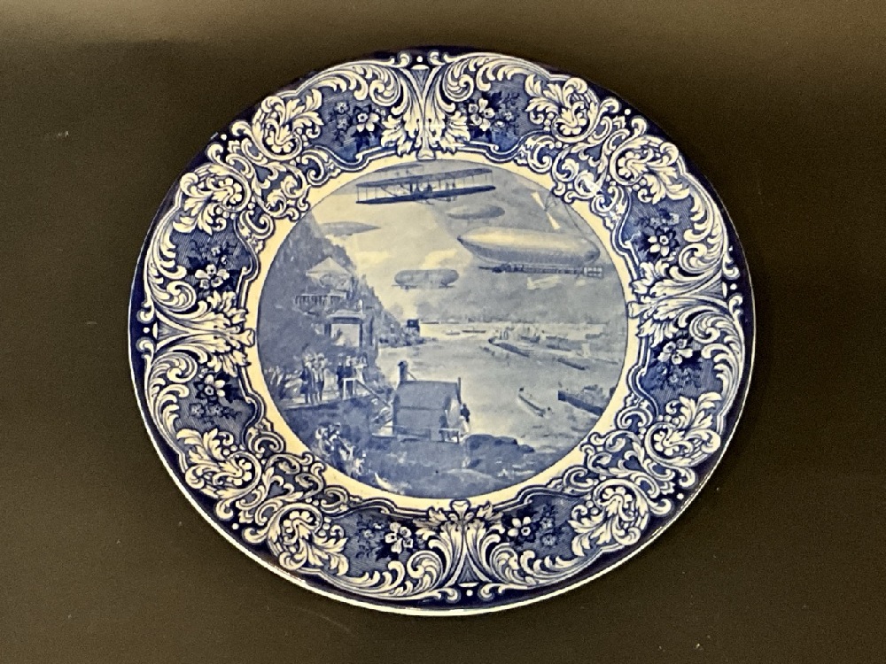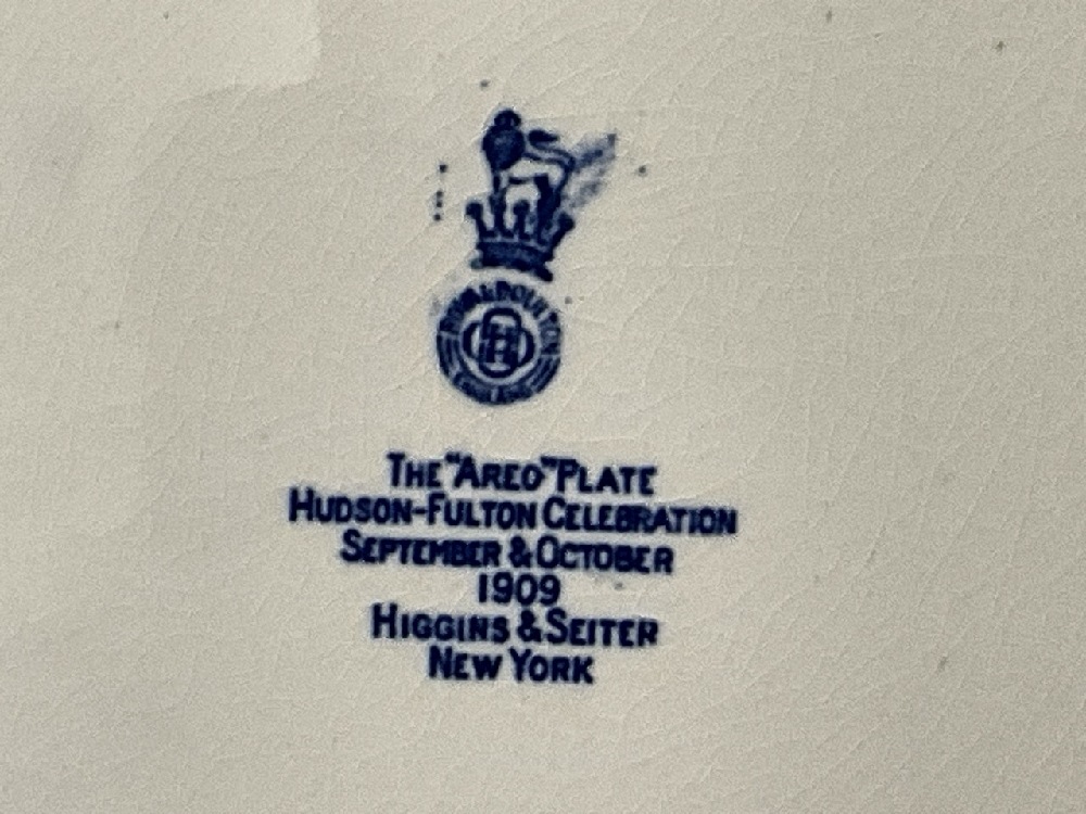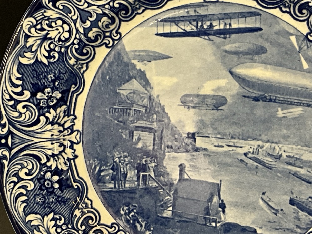 The Aero Plate Hudson Fulton 1909 Higgins And Seiter Celebration Plate. Features Ships, Zeppelin and Airplanes.