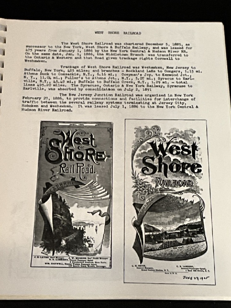 Steam Locomotives of Yesteryear Edited and compiled by Harry P. Albrecht and Timetable Pictorial of the West Shore Railroad by Ed Gardner