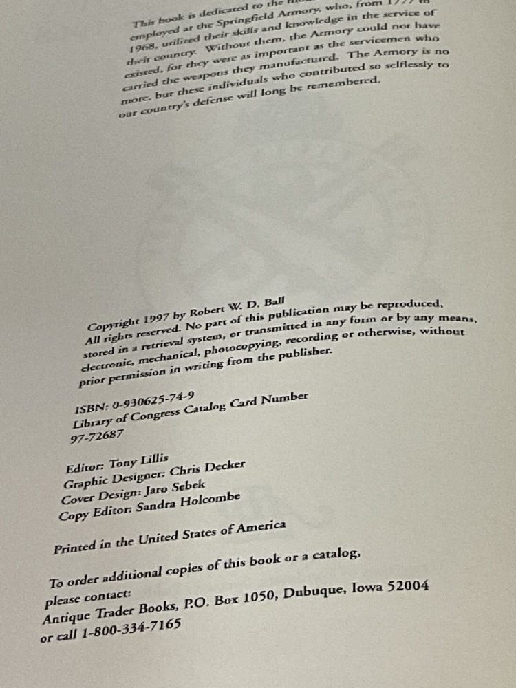 Springfield Armory shoulder weapons 1795-1968 by Robert W. D. Ball