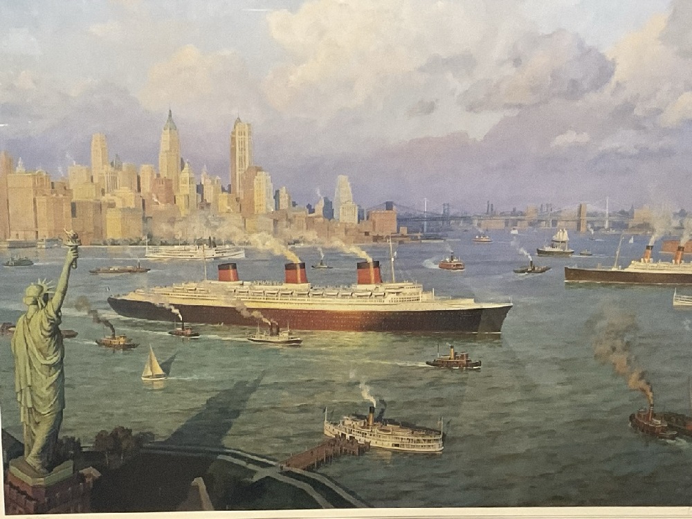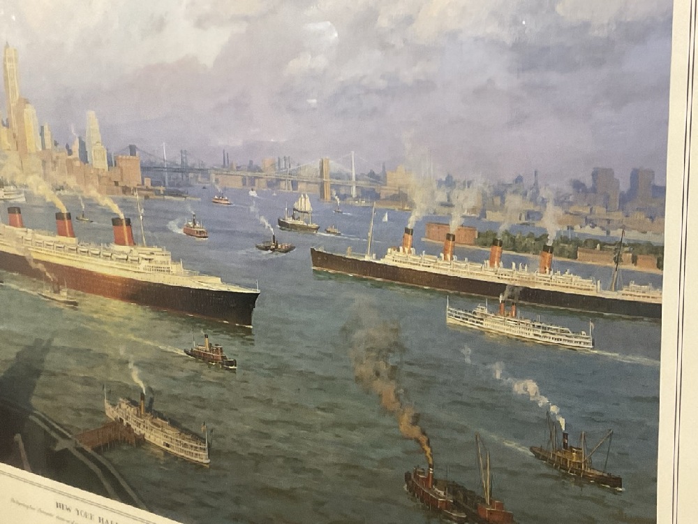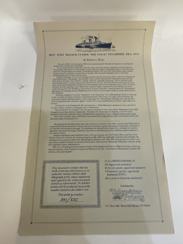 New York Harbor during the great steamship era 1933 by William Gordon Muller. Pencil Signed and Numbered 341/525