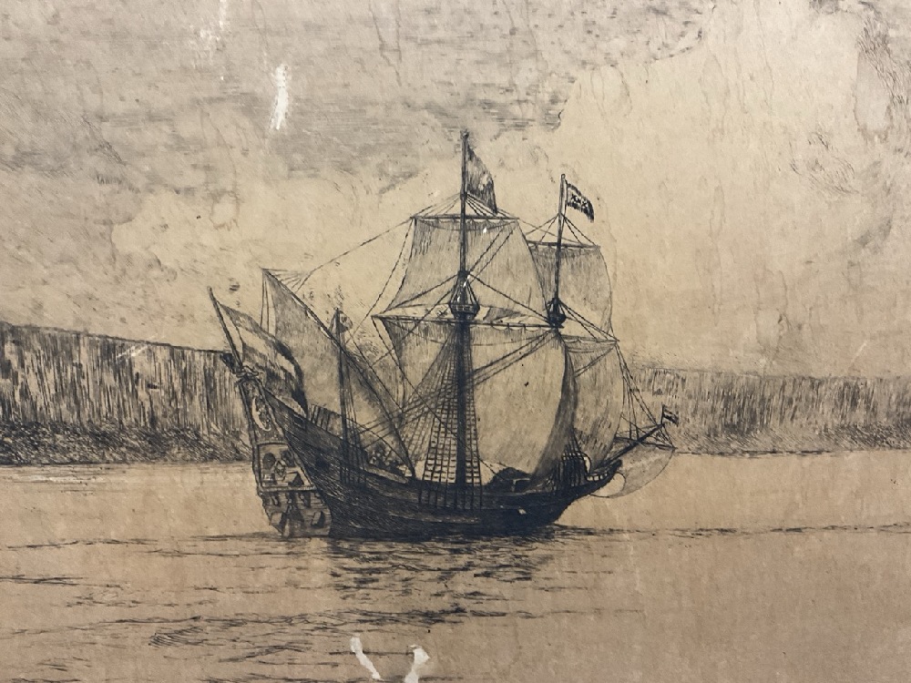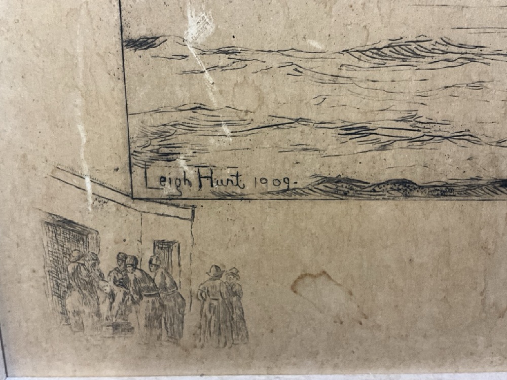 Leigh Hunt 1909 Pencil Signed Hudson Fulton Celebration. Heavily soiled and loss noted. Please see photograph preview.