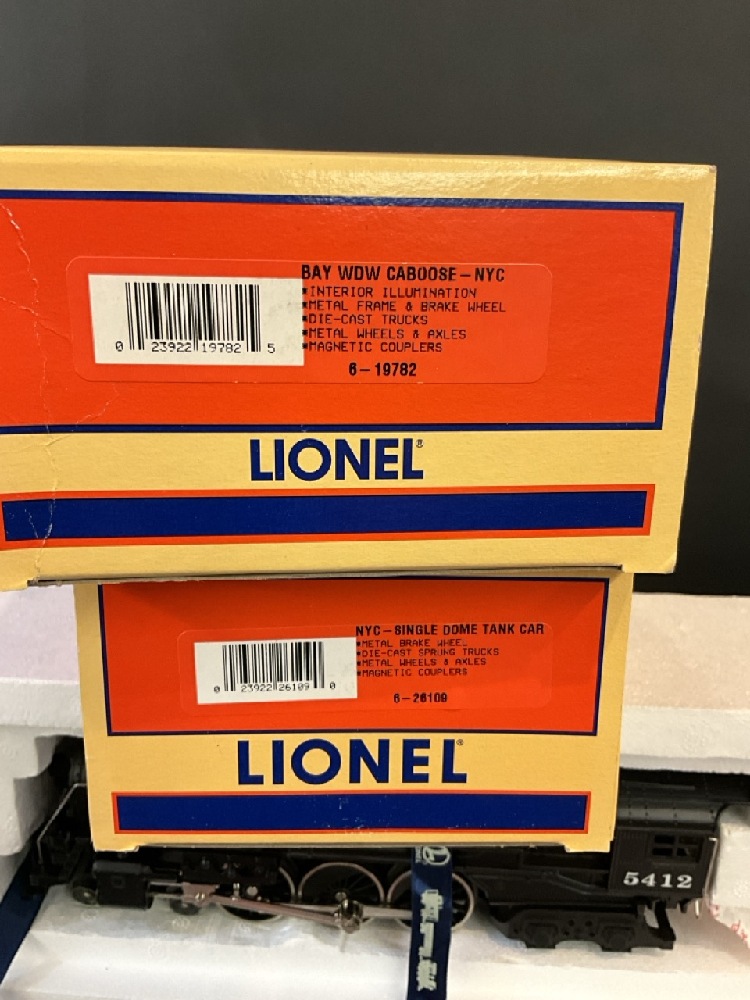 Lionel Trains 5412 New York Central Engine and Tender in box. Includes NYC Single Dome Tank Car 6-26103 and Bay Window Caboose 6-19782.