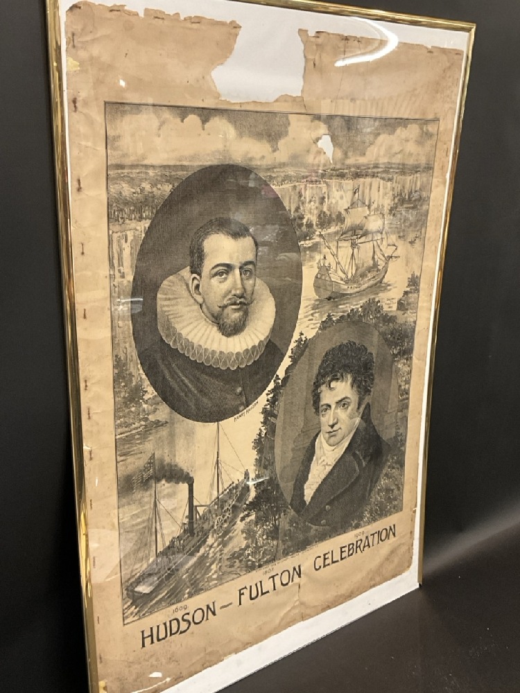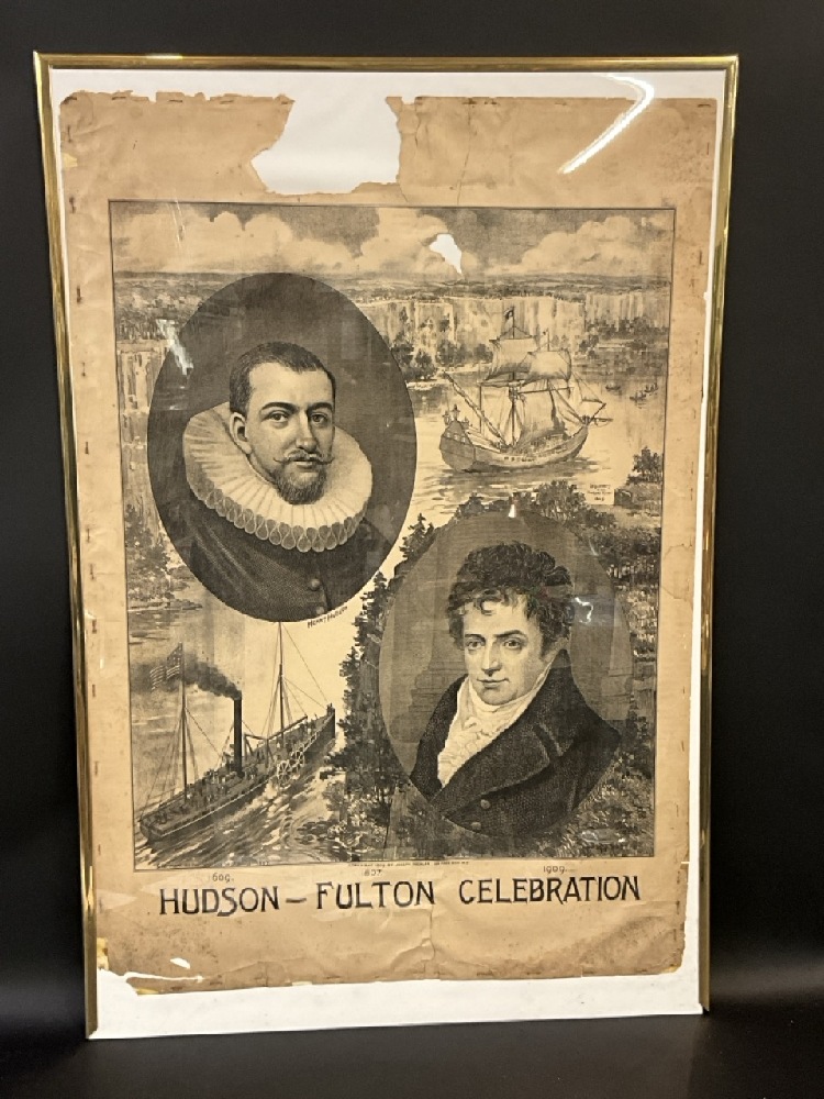 Hudson Fulton Celebration Broadside printing featuring Henry Hudson and Robert Fulton Portraits.