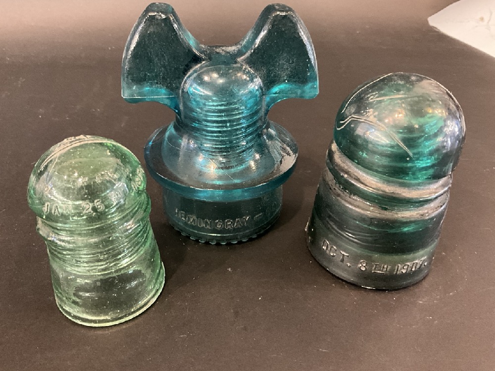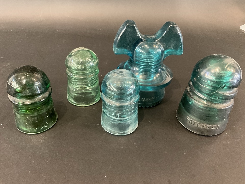 Five (5) Vintage Insulators, Hemingray, Brookfield, Patented 1907,1870