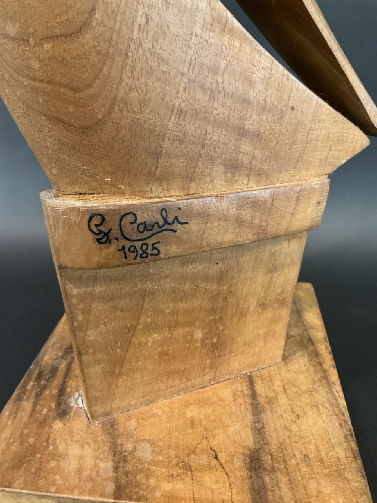 Giuseppe Carli 1985 Signed Wood Sculpture.
