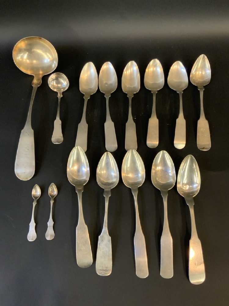 Fifteen (15) Piece Coin Silver Flatware Group.