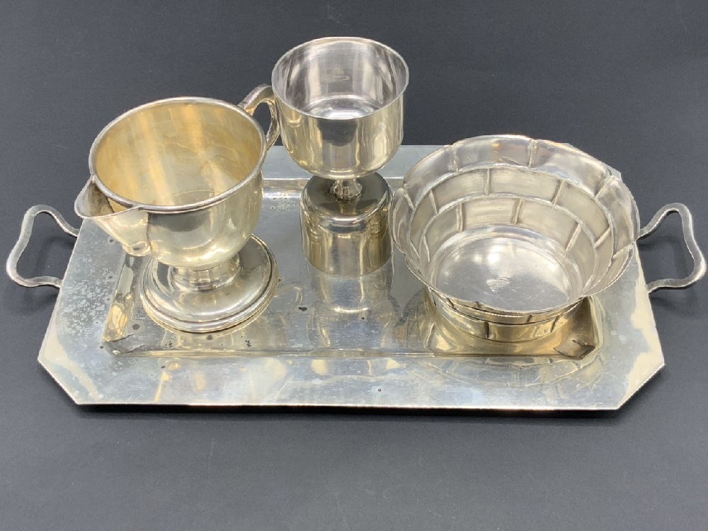Four Piece Sterling Silver Grouping. Including Mexican Sterling Silver Sugar and Creamer, Tray and