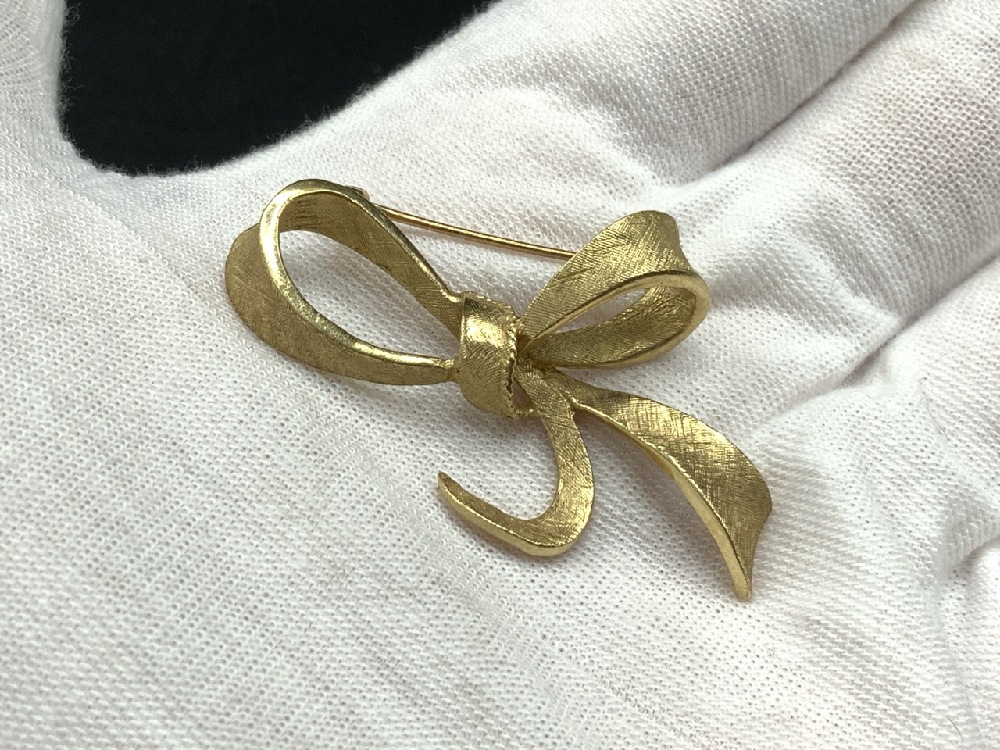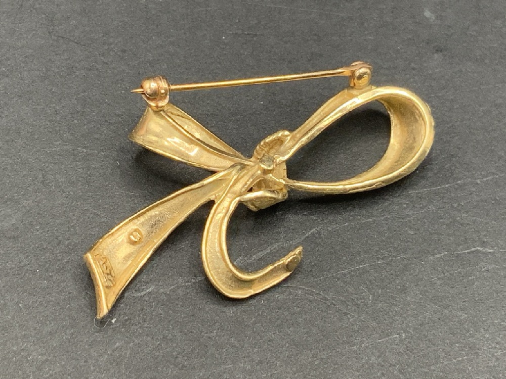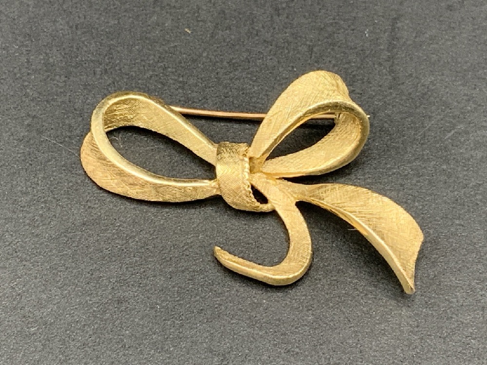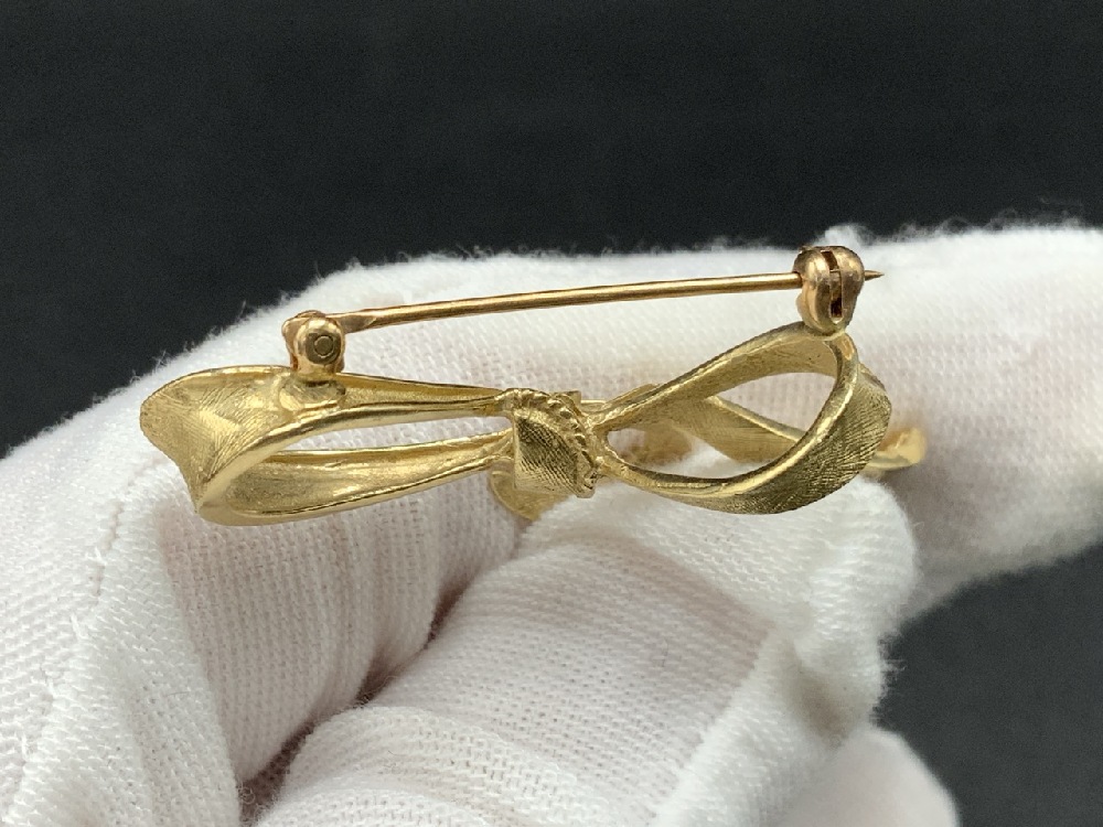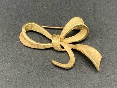 14k Yellow Gold Tied Bow Pin. Not marked. Tested 14K.
