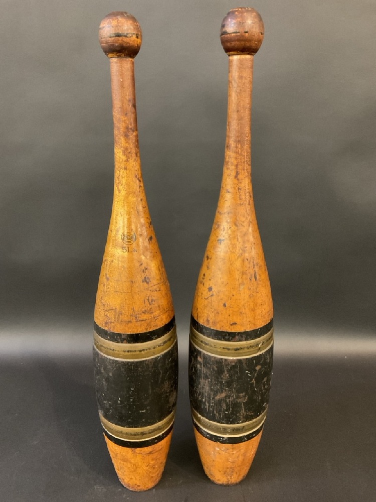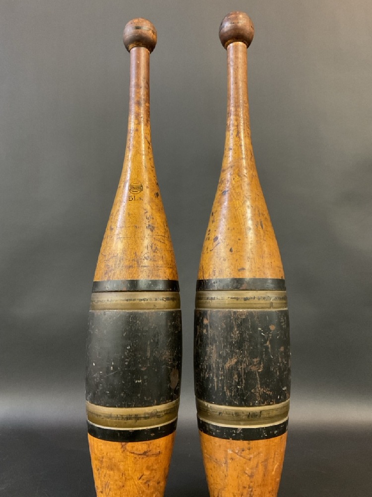 Two (2) Vintage Spaulding 5 lb Juggling Pins.