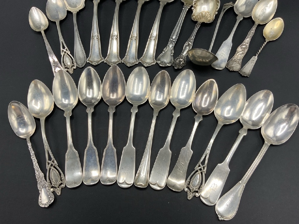 Twenty-Five (25) Assorted Sterling Silver Spoons. Various makers. Late 19th and early 20th century.