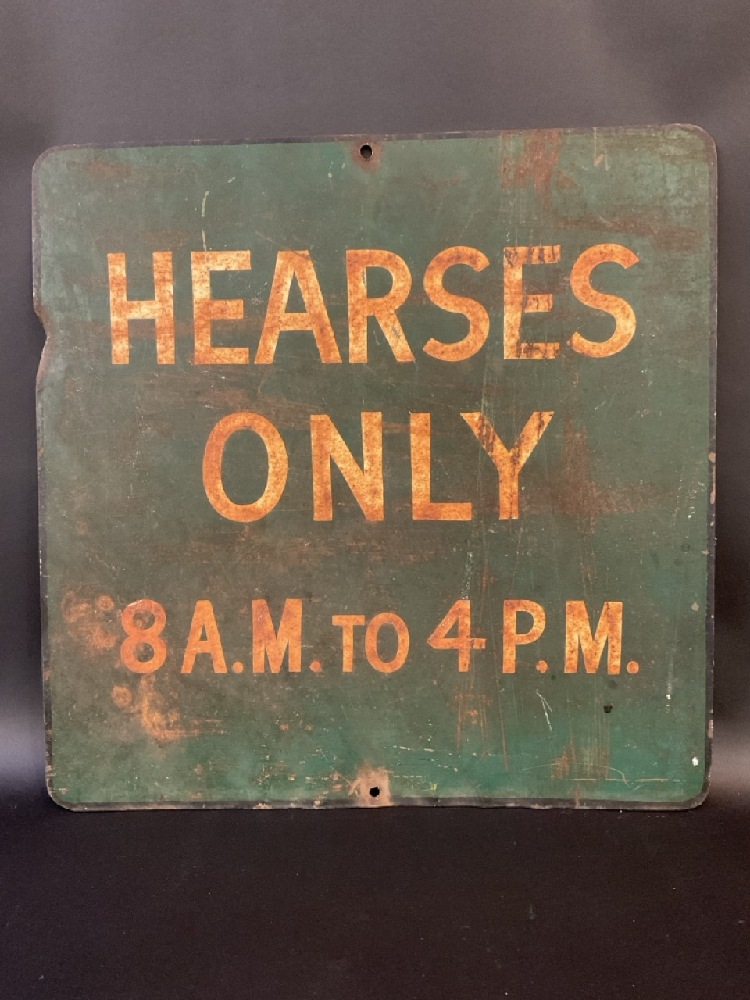 Vintage Hearses Only "Parking" Sign. 8am-4pm. 1st Half 20th century. Original one sided metal sign.